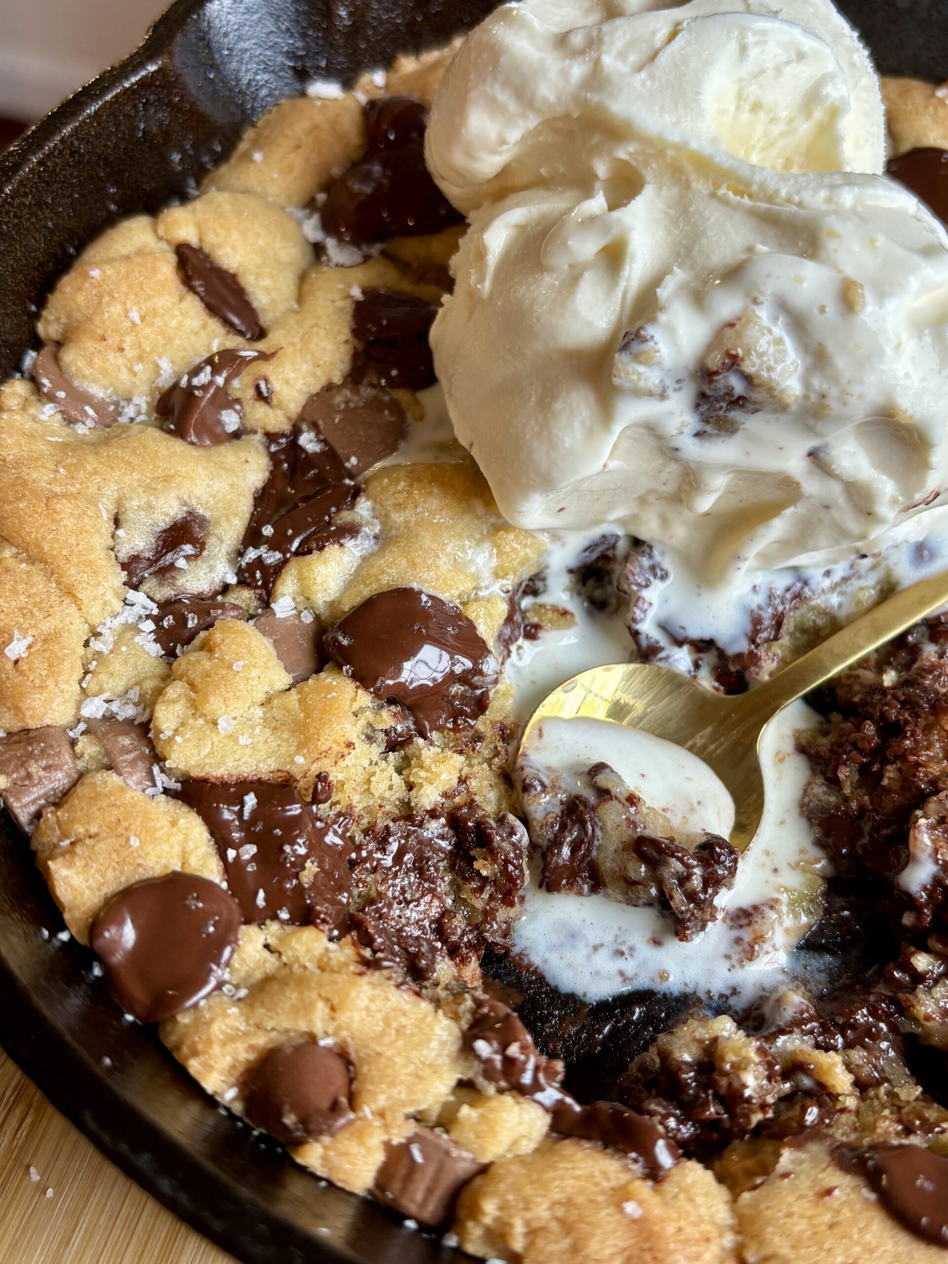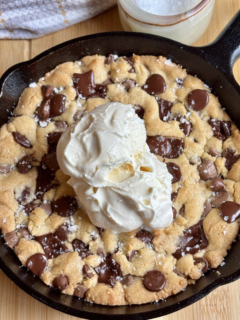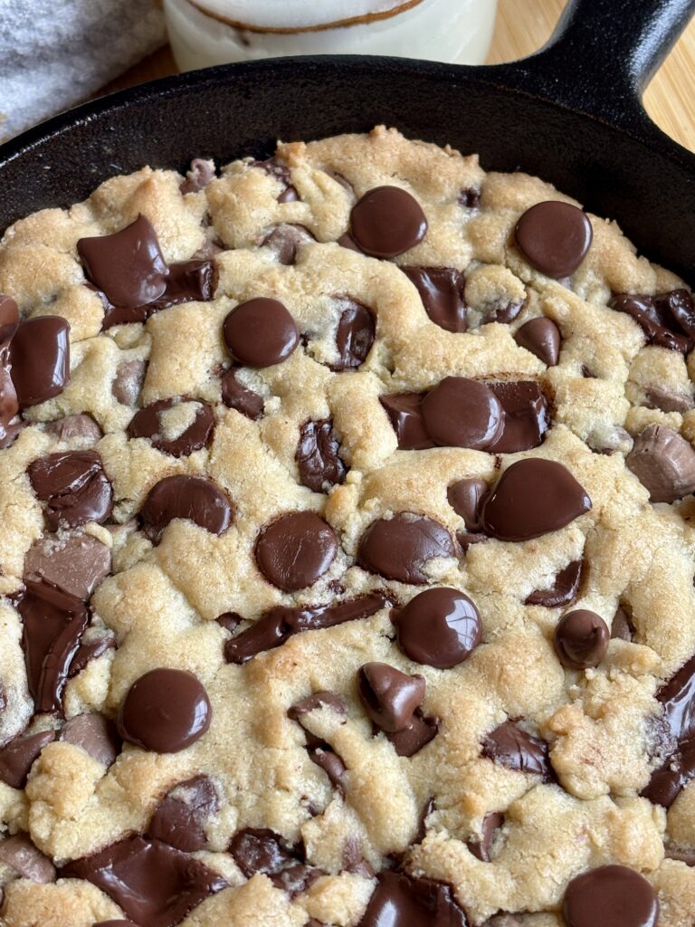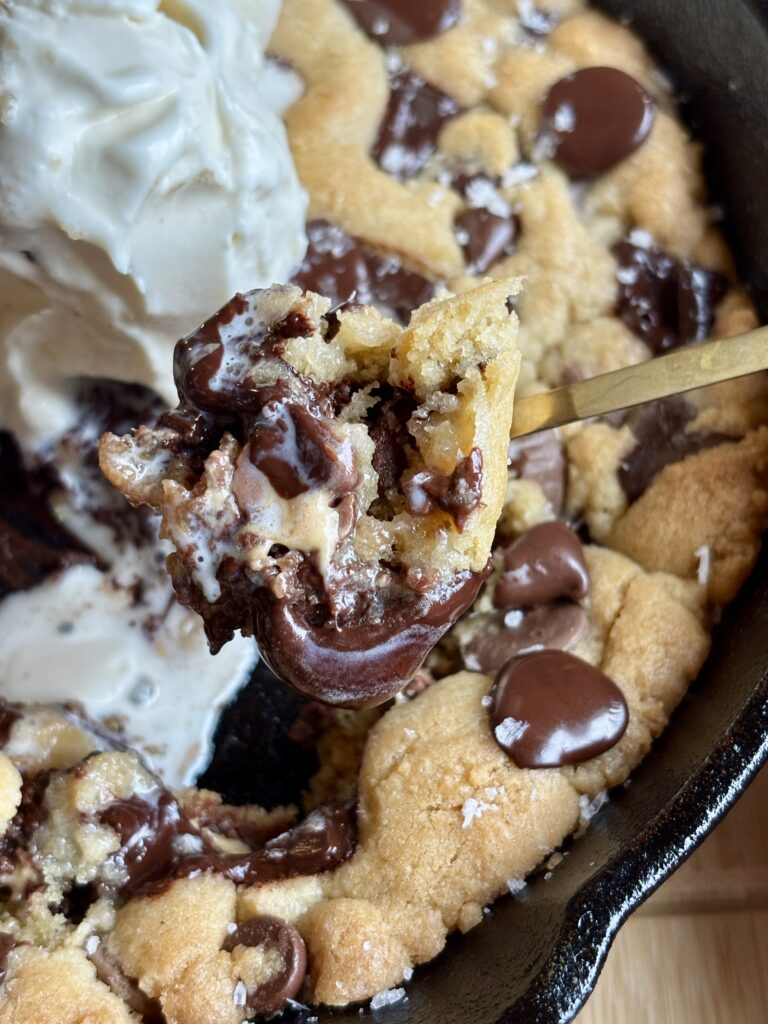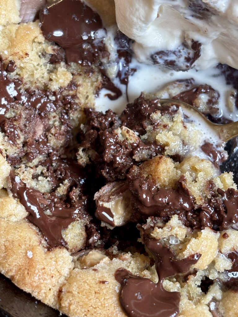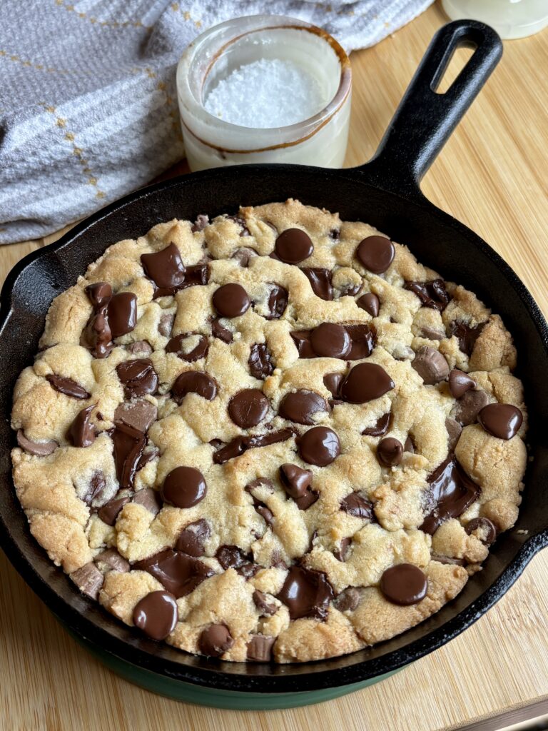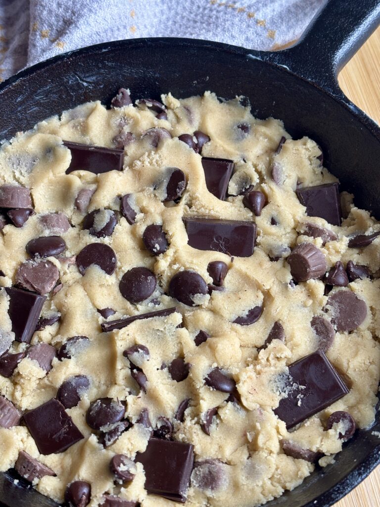 This recipe is inspired and scaled from my Most Perfect Chocolate Chip Cookies and made specifically for a 6-inch cast iron skillet. It bakes up thick, soft, and scoopable with melty pools of chocolate in every bite. Even better? You can customize it with whatever mix-ins you love! Think dark chocolate chips, white chocolate chips, milk chocolate chips, peanut butter cups, toffee bits, or a mix of all of it!