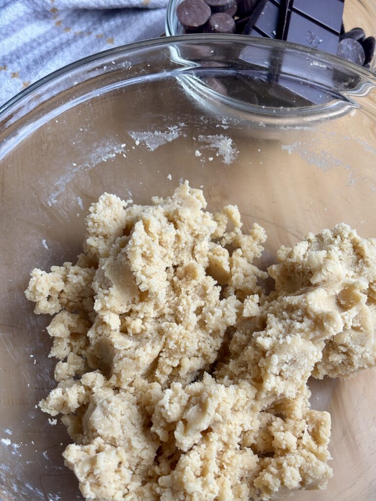 - If dough feels crumbly, press it together with your hands. It will come together.