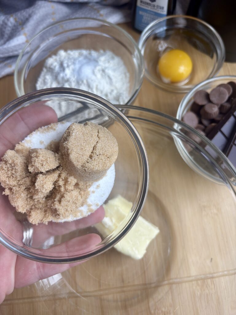 - Granulated Sugar and Light Brown Sugar: The combo gives sweetness plus chewiness and caramel flavor.