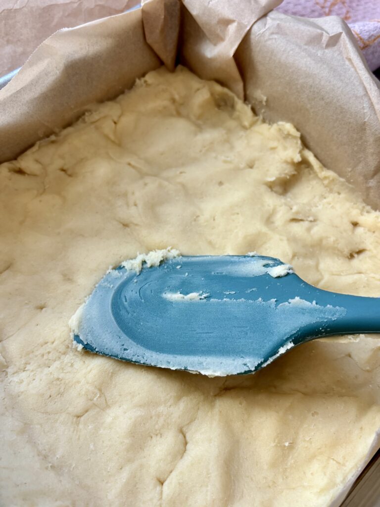 • Shortbread: In a stand mixer, beat butter until smooth and creamy. Add in sugar and cream together until smooth. Add in egg and vanilla and beat again. Add in dry ingredients and stir until completely combined. Press the shortbread mix firmly into the bottom of the baking pan, making it as even as possible. Bake for 10 minutes while making the frangipane.