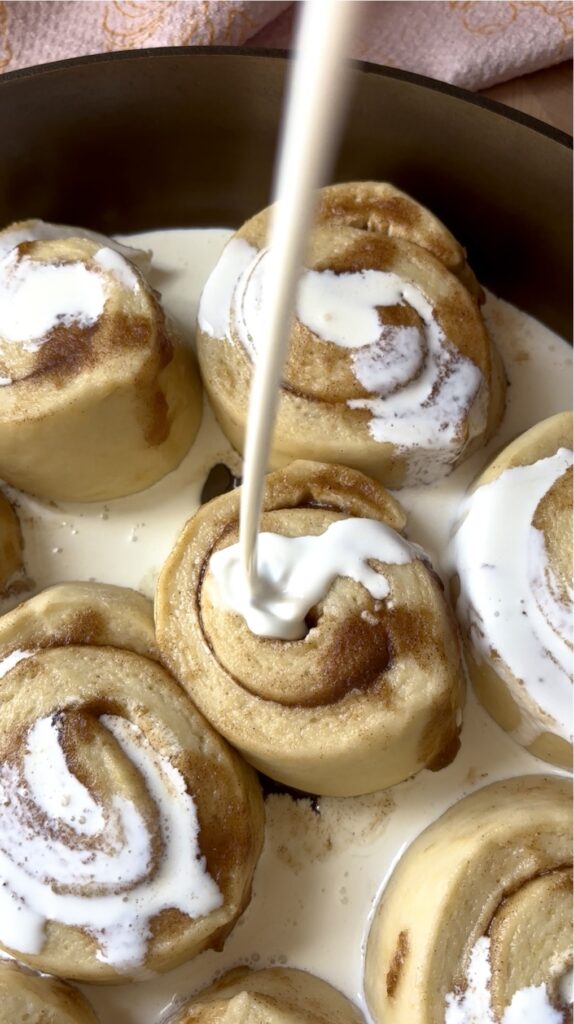 • Don’t skip the heavy cream drizzle!! This is what gives the rolls their signature gooey texture — it’s the ultimate upgrade!