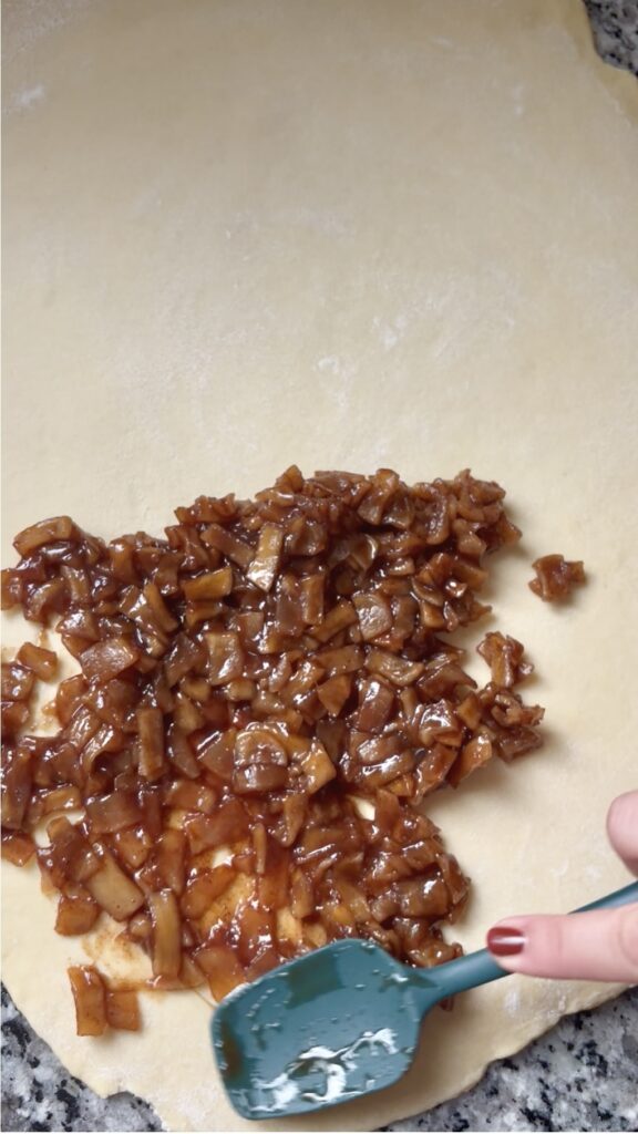 - Mash slightly: Breaking up the apples helps distribute the filling evenly in the dough.