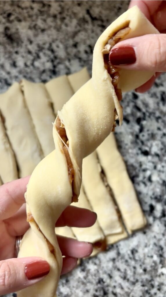 - Twist snugly: Give each strip a few firm twists before rolling to hold the filling inside.