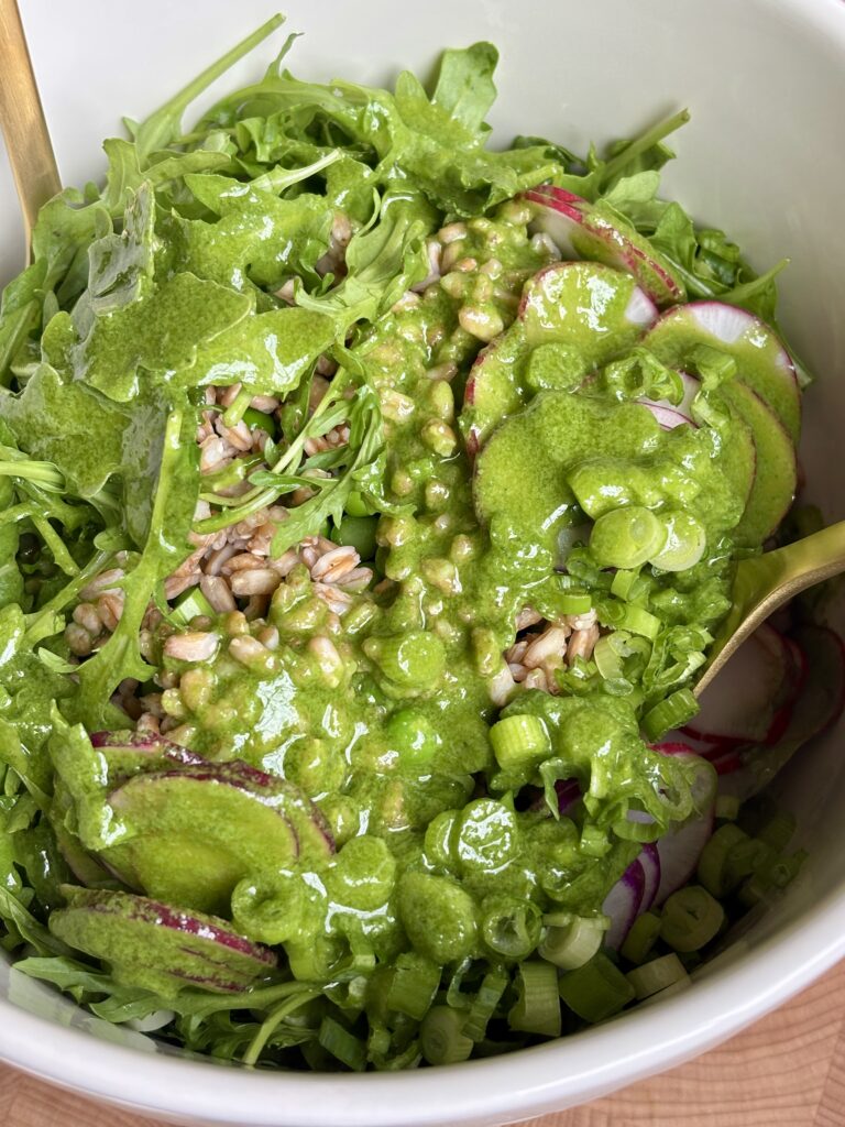 It’s especially perfect with a spring pea and asparagus salad, where the bright herbs complement the fresh vegetables beautifully.