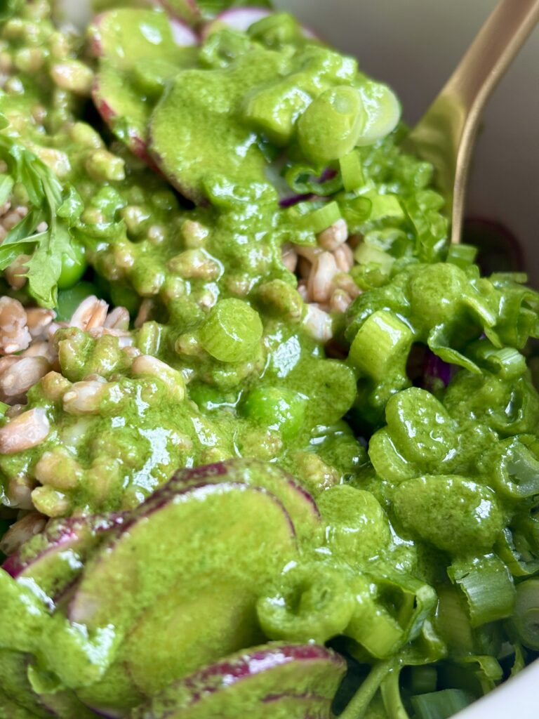 This is the dressing I reach for when I want something that makes vegetables shine, especially drizzled over my Spring Pea and Asparagus Salad. It clings beautifully to crisp greens, tender asparagus, and sweet peas, bringing everything together in the most refreshing way.