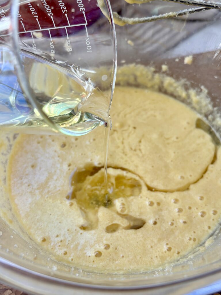 • Granulated sugar: Sweetens the batter and helps create a soft crumb.