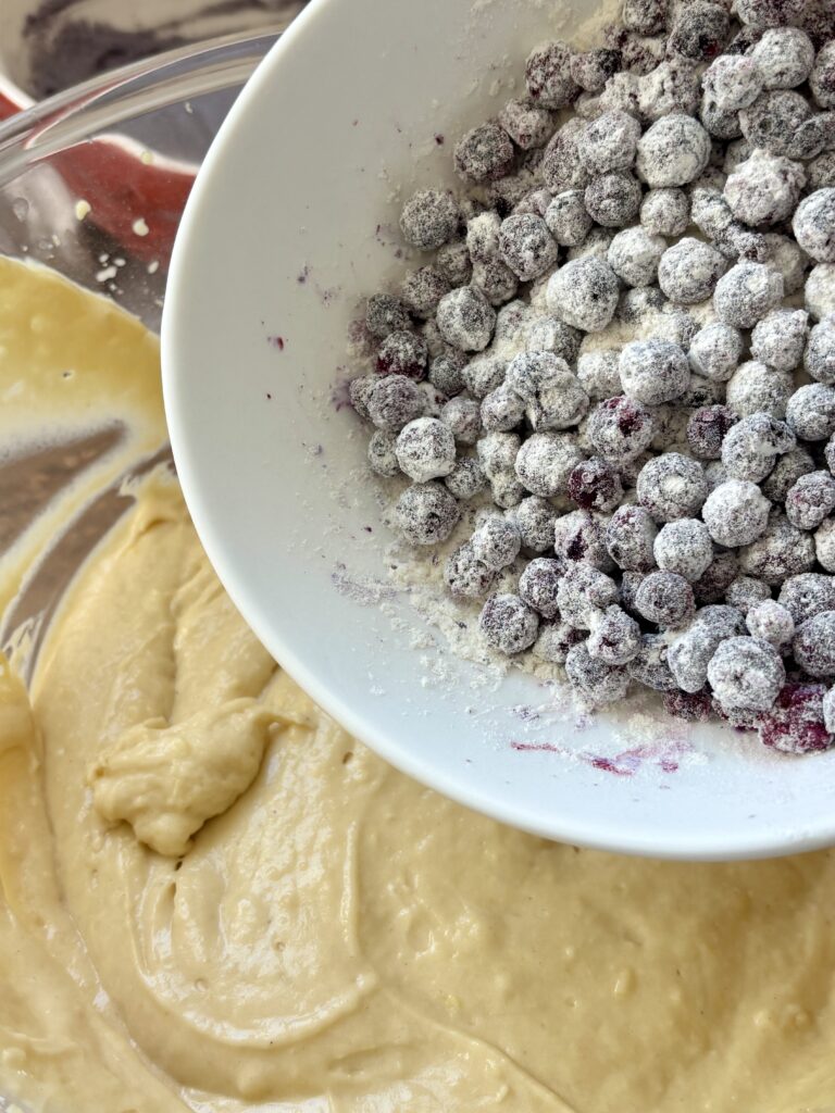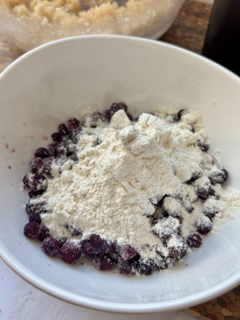 • Frozen blueberries: can be replaced with fresh blueberries (still coat lightly in flour).