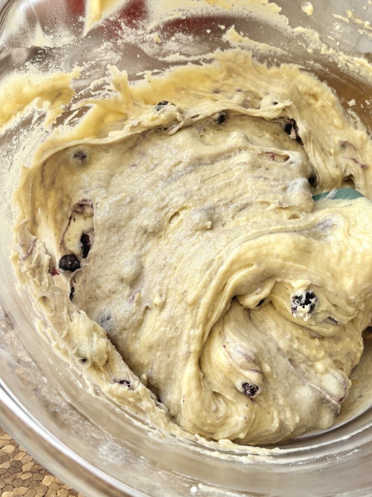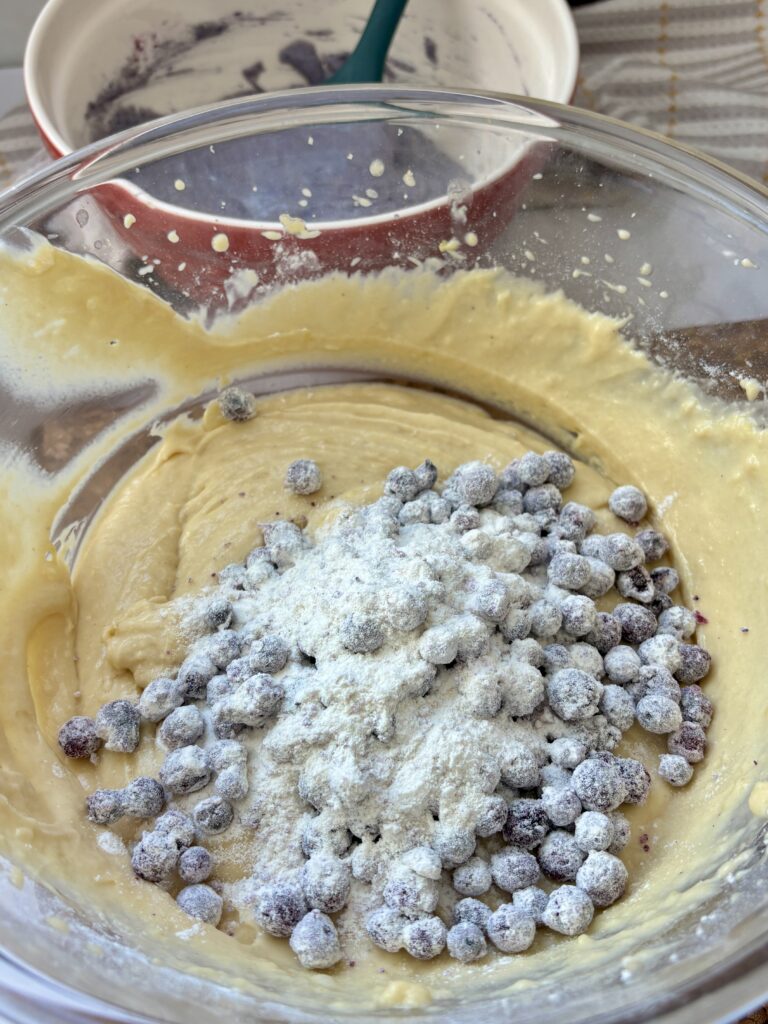 • Fold the floured blueberries into the remaining ⅔ of the batter.