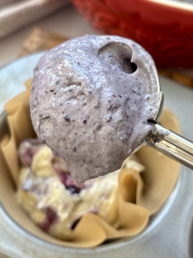 • Flour for swirl: Helps thicken the blueberry swirl so it does not disappear into the batter.