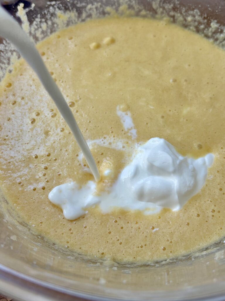 • Whole milk: Adds moisture and balances the batter consistency.