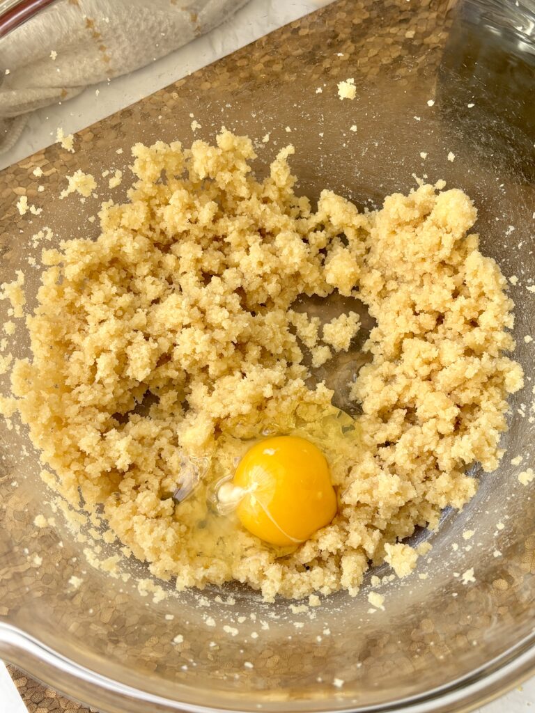 • Cream the butter, granulated sugar, and brown sugar until light and fluffy.