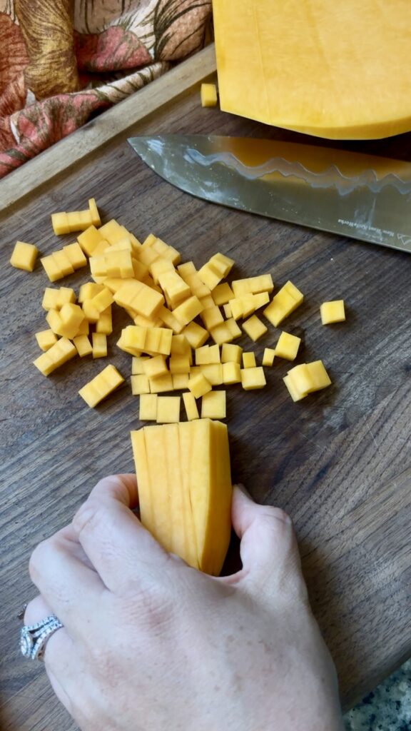 - Dice the squash small (Brunoise cut) so it cooks evenly and caramelizes quickly.