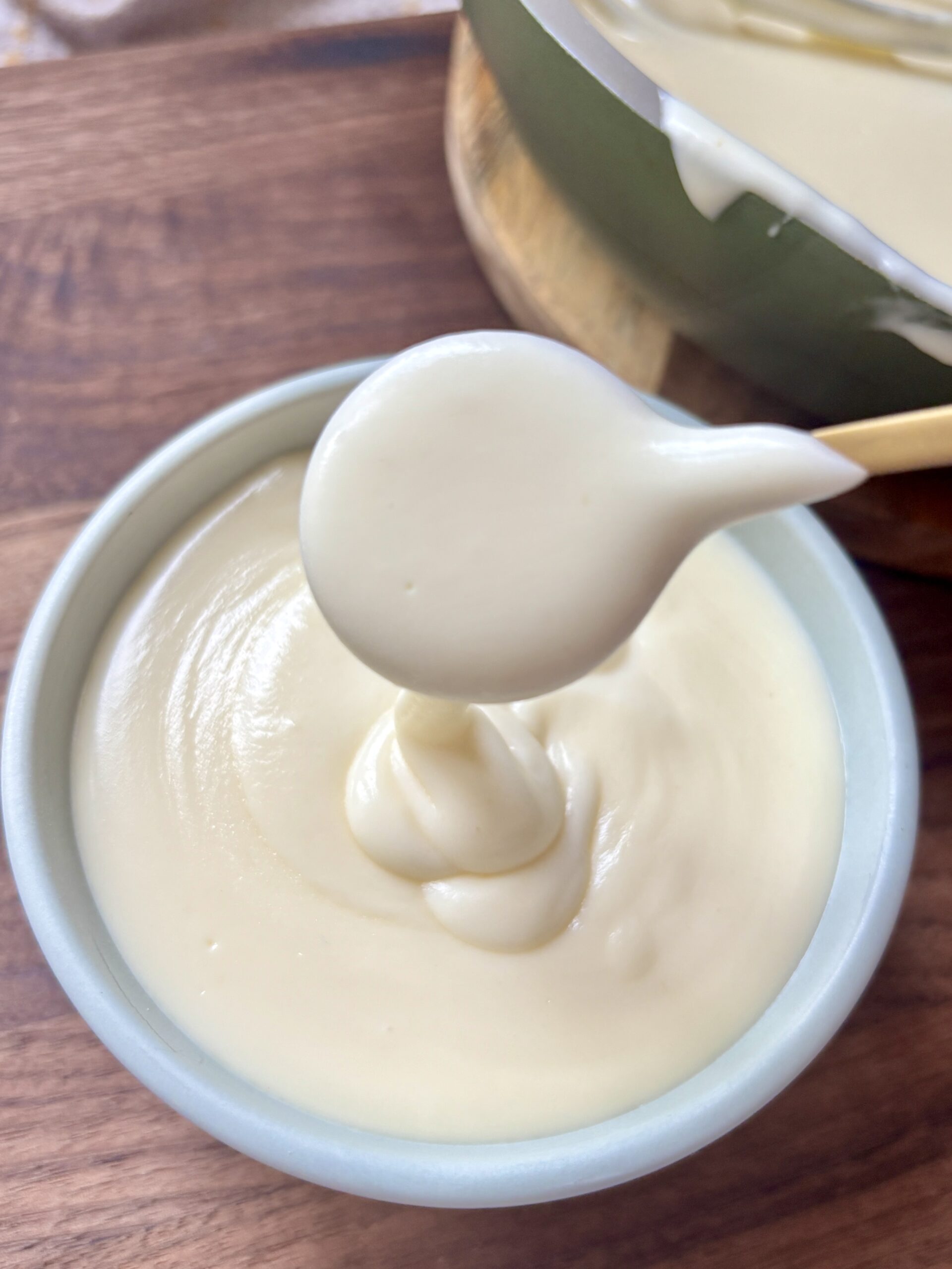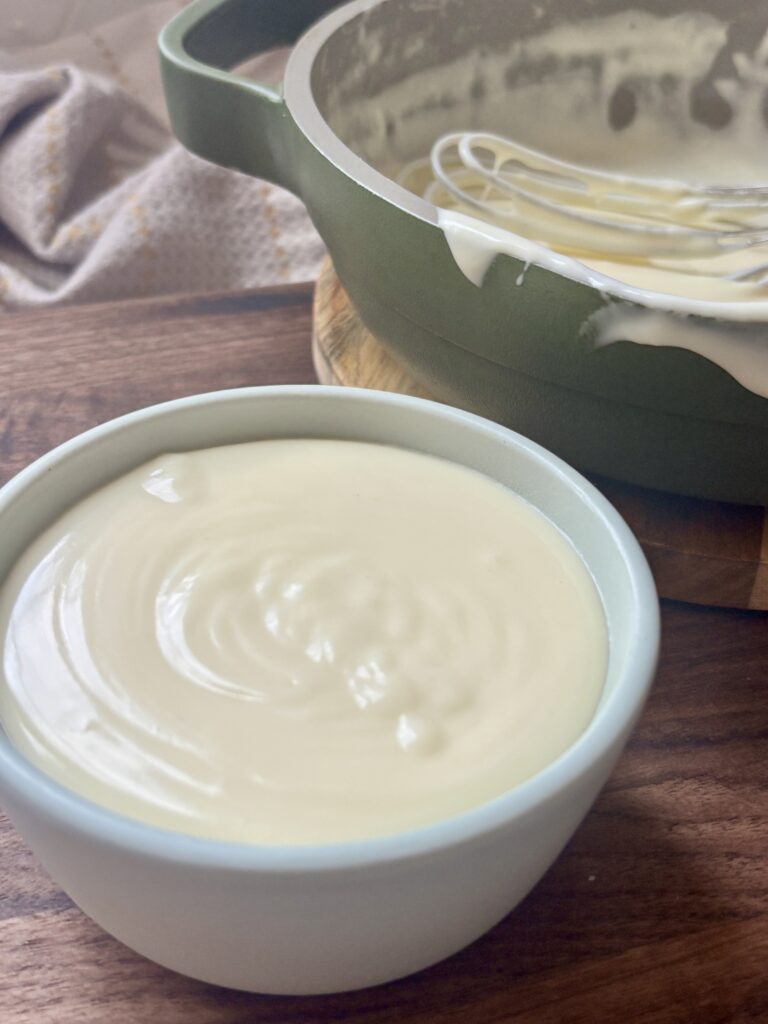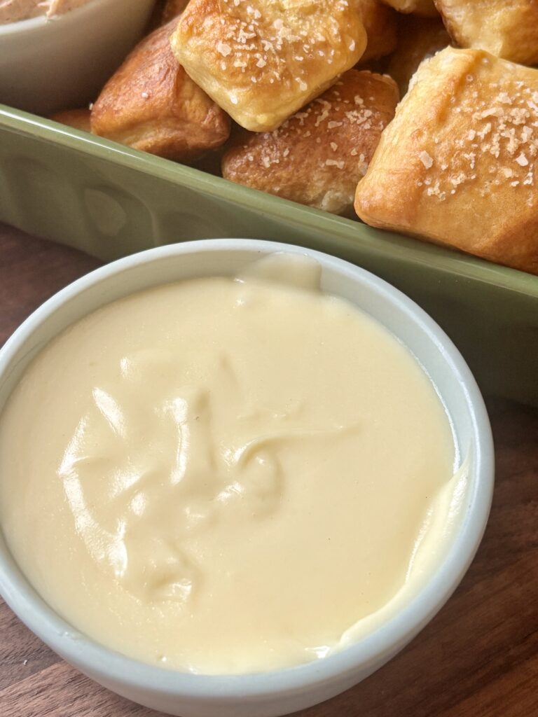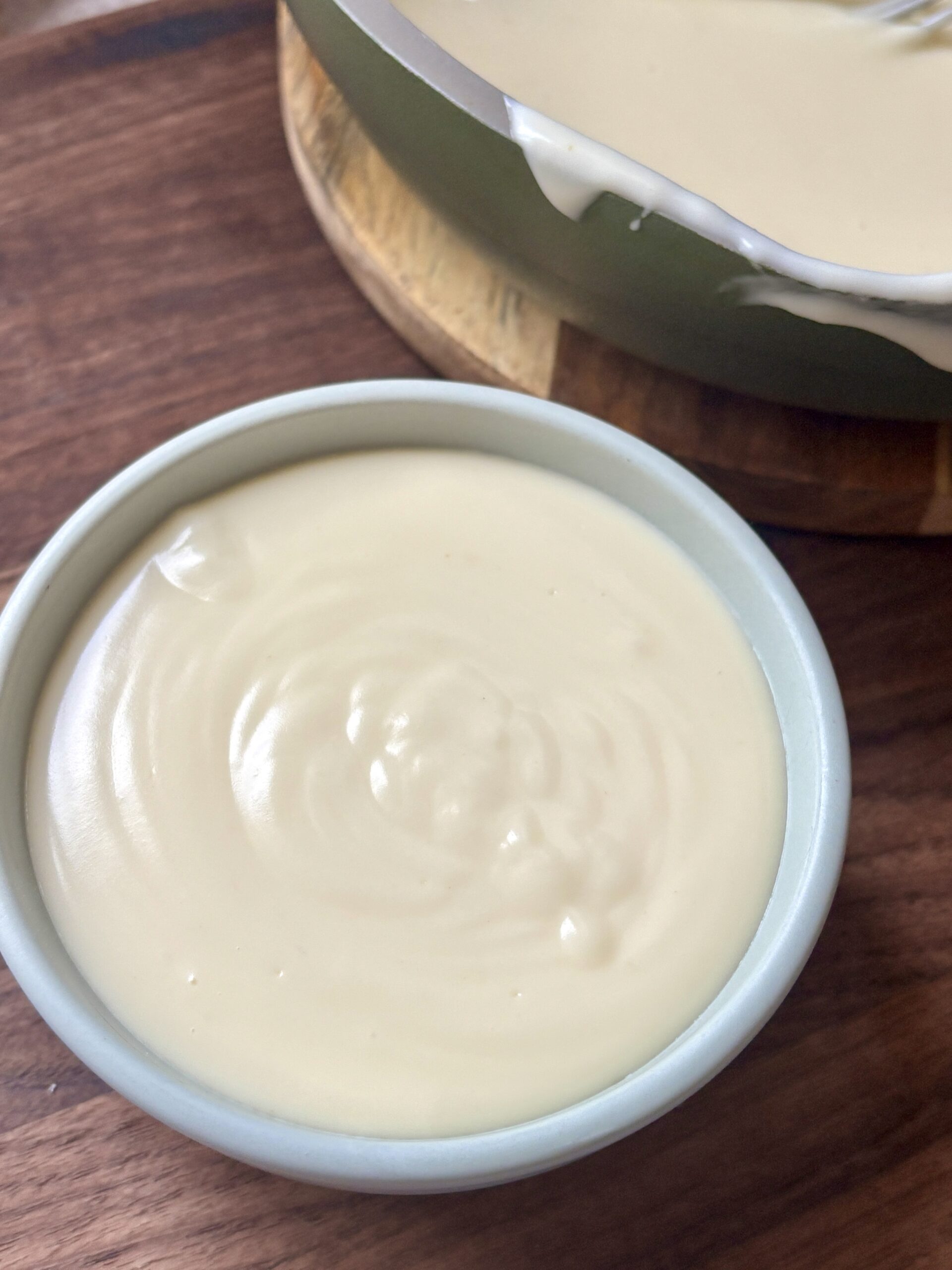 It comes together in about 15 minutes and stays beautifully pourable, making it ideal for drizzling over roasted vegetables, spooning onto potatoes, tossing with pasta, or serving warm as a dipping sauce for pretzels, fries, or nachos. This is a foundational sauce recipe you’ll come back to again and again. Simple, classic, and endlessly versatile.