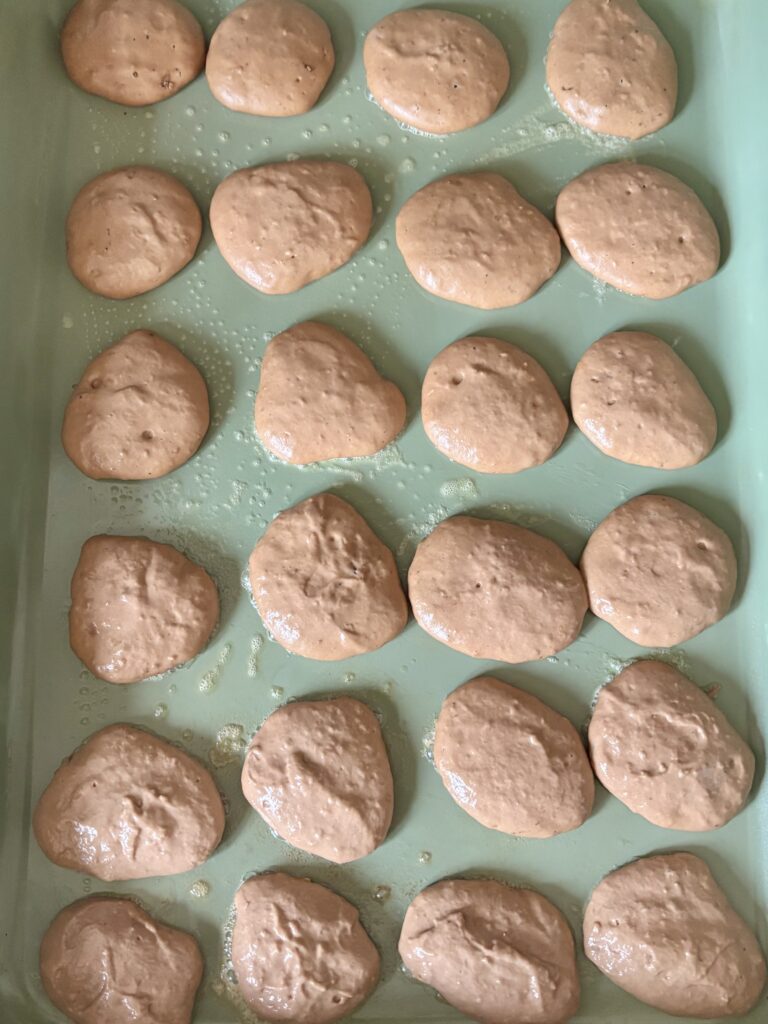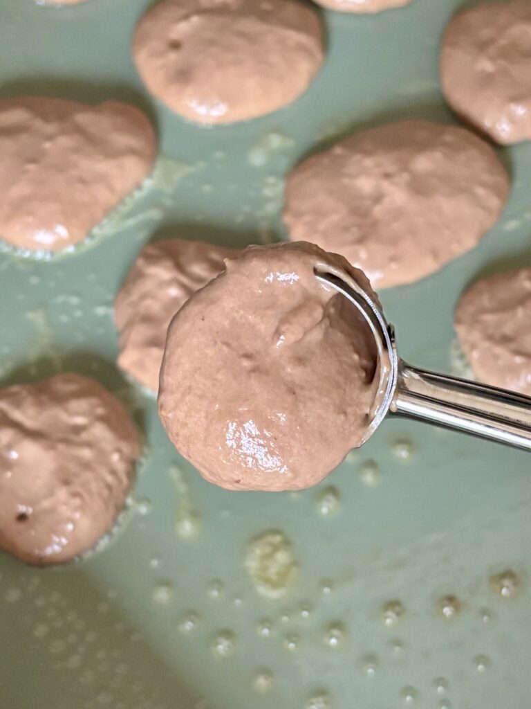 • Scoop batter using a size 60 scoop, or 1 tablespoon, and pour onto the pan.