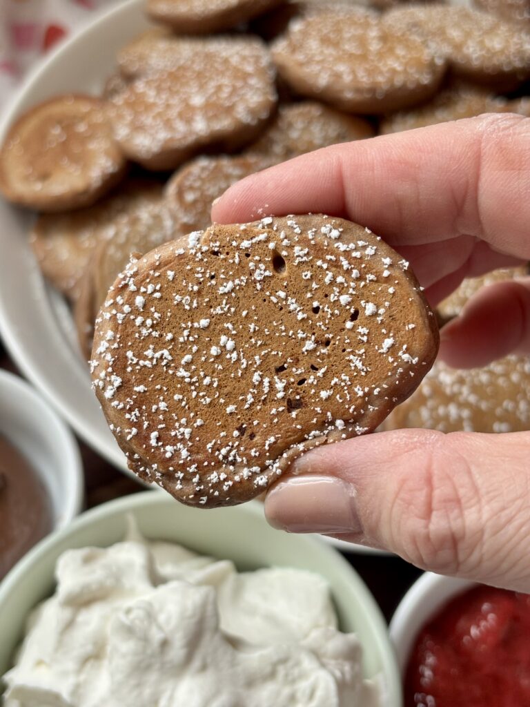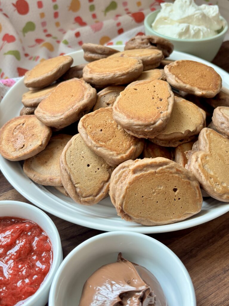 Serve them warm with maple syrup, strawberry jam, Nutella, whipped cream, or a dusting of powdered sugar, and watch them disappear faster than you can make the next batch.