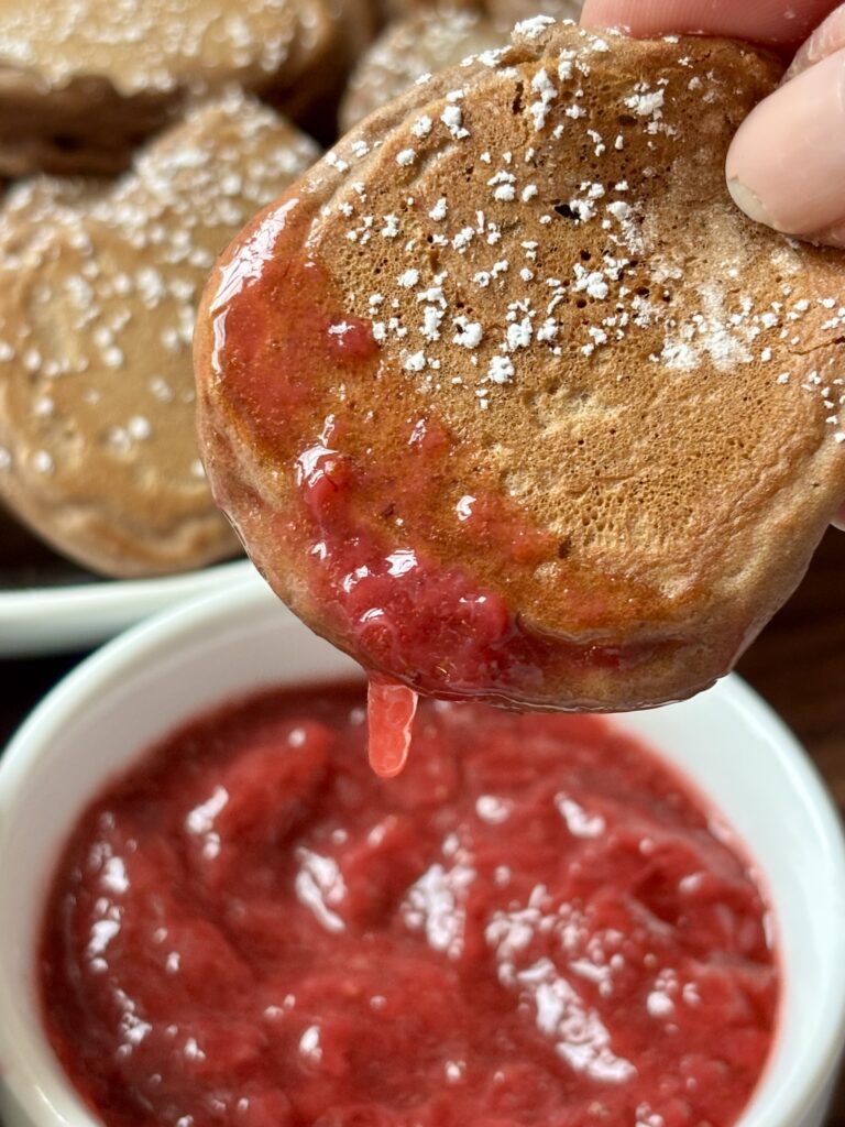 The batter comes together quickly with pantry staples and a smooth blended base, creating tender pancakes with just the right amount of chocolate flavor. They’re sweet without being overpowering, easy to customize with different dips, and perfect for sharing.