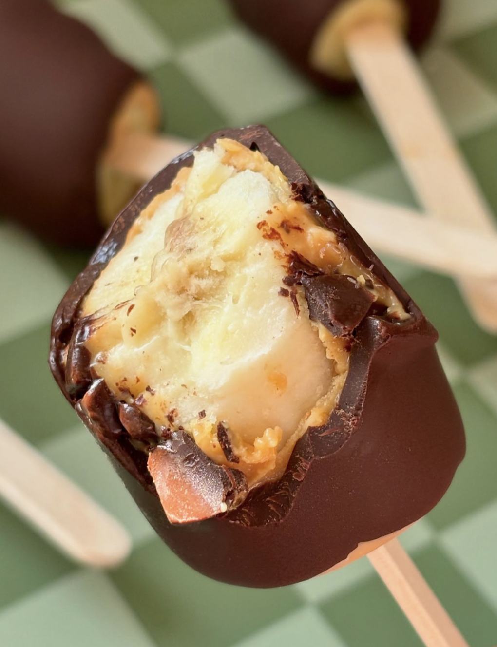 They’re everything you want in a dessert: easy, fun to eat, and secretly better for you than most store bought options. The natural sweetness of ripe bananas, paired with rich, crunchy peanut butter and a crisp dark chocolate shell, creates that classic flavor combo we all love (just in a refreshing frozen form).