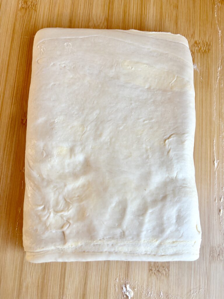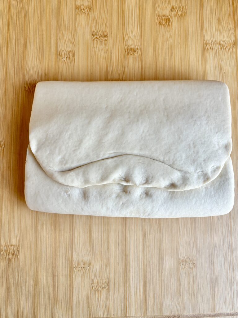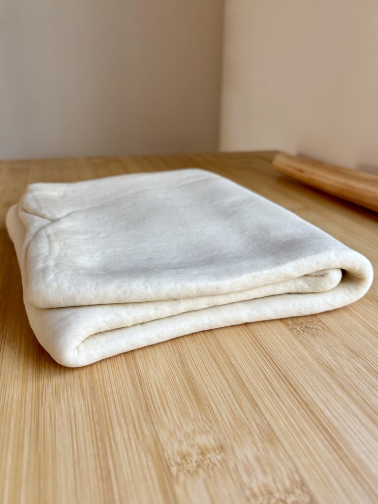 - Repeat this lamination process of rolling and folding for a total of 4 folds, chilling 30–45 minutes between each fold. I also like to make a shallow cut along the side of the folded side before rolling to help it roll out evenly.