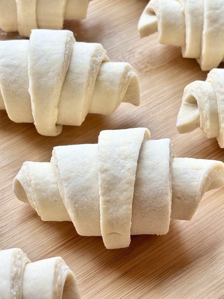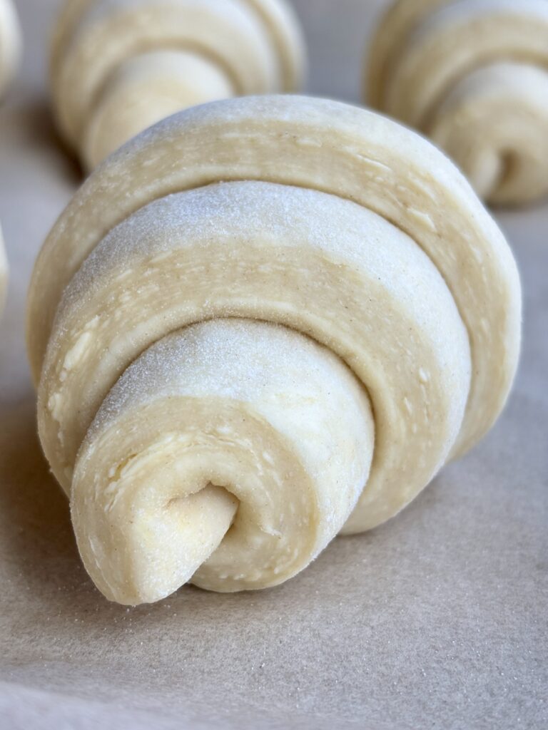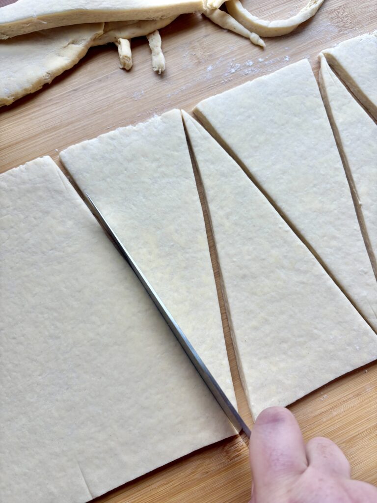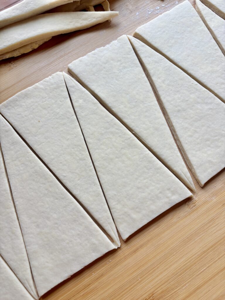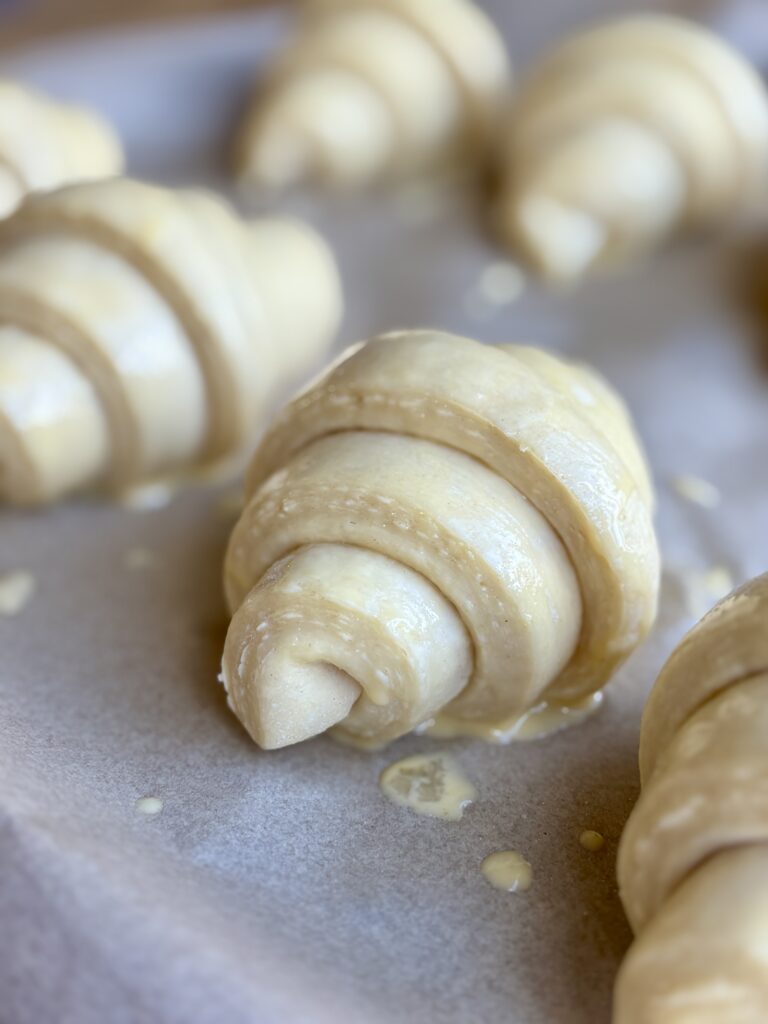 - Use a ruler for shaping! Listen, I am not one for perfect precision, often I say “this is good enough”, but when it comes to these, I’m alway precise and pulling out my ruler! Even triangles means evenly baked croissants. It makes a bigger difference than you think.