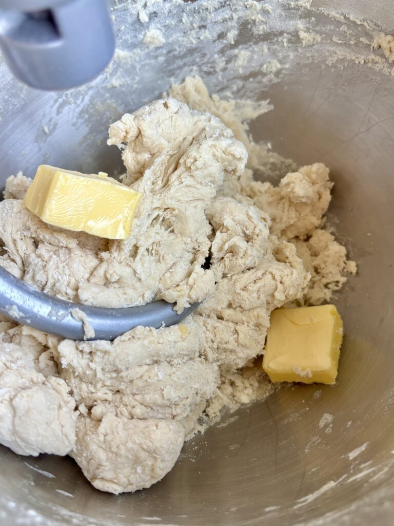 - Add softened butter and knead 6–8 minutes until smooth and slightly tacky.
