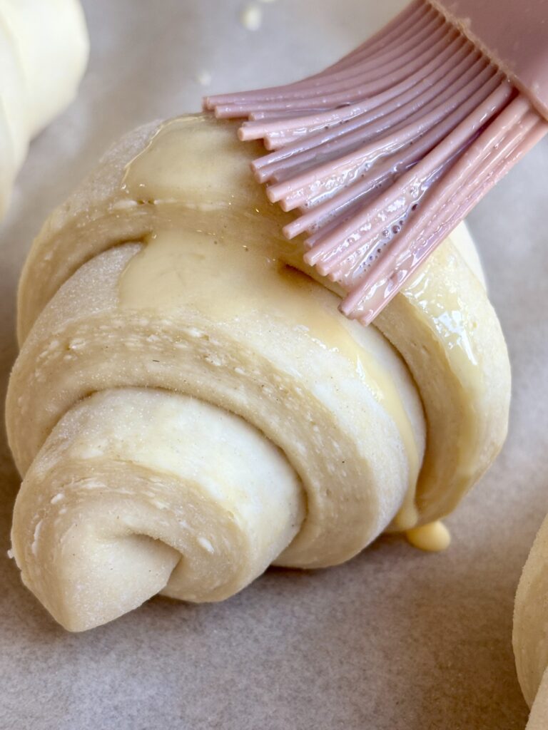 - Whisk egg and cream, then brush croissants evenly.