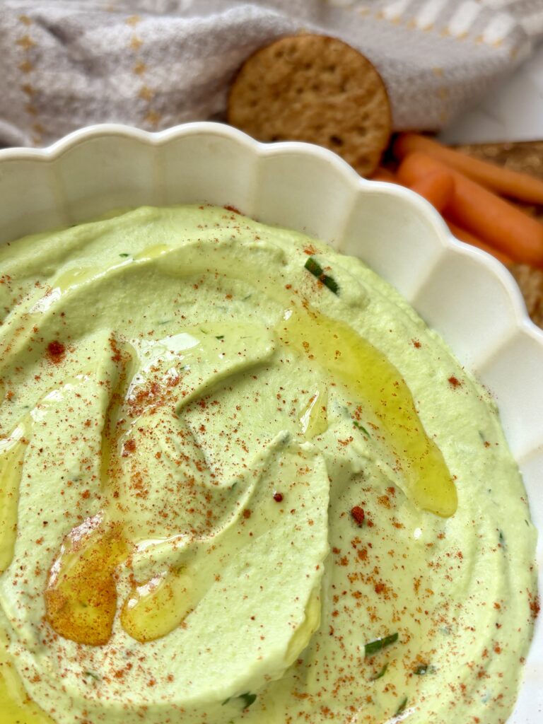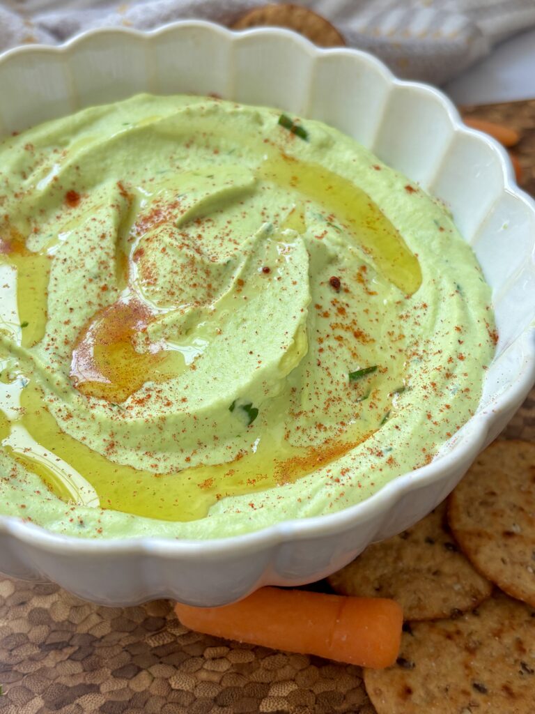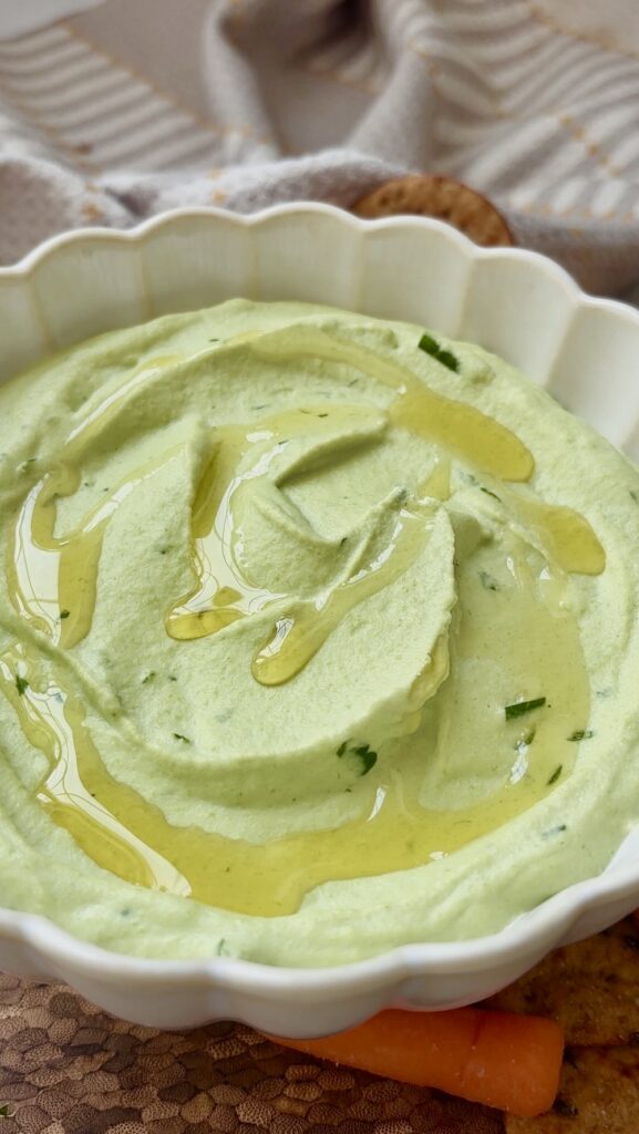 This creamy Edamame Hummus is a fresh, vibrant twist on classic hummus. It is creamy, bright, and naturally protein packed. Made with shelled edamame, tahini, fresh lemon juice, herbs, and quality olive oil, it’s silky smooth with a subtle sweetness and herbaceous finish.