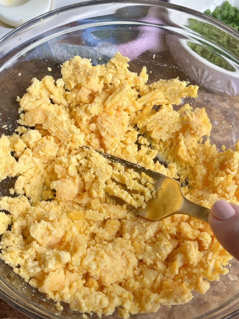 Yes, you push yolks through a fine mesh sieve before mixing if you’d like.