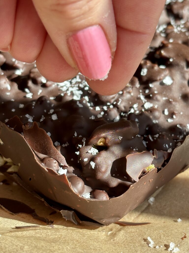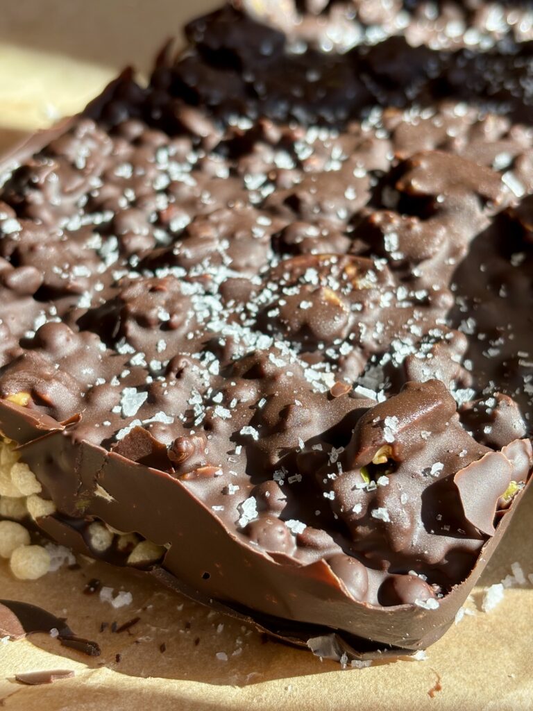 • Sprinkle flaky sea salt while the chocolate is slightly tacky so it adheres well.