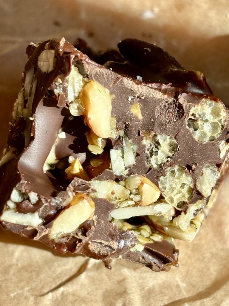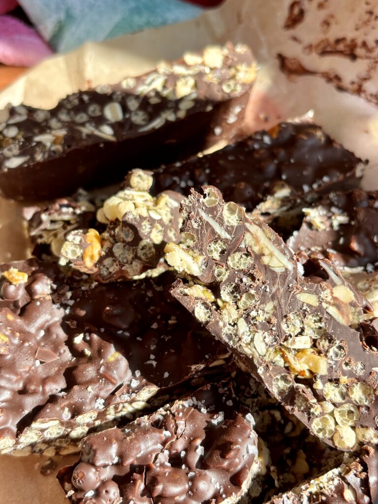 • Quinoa Puffs: Light and crispy, these add an airy crunch reminiscent of classic chocolate crunch bars, and a little protein.