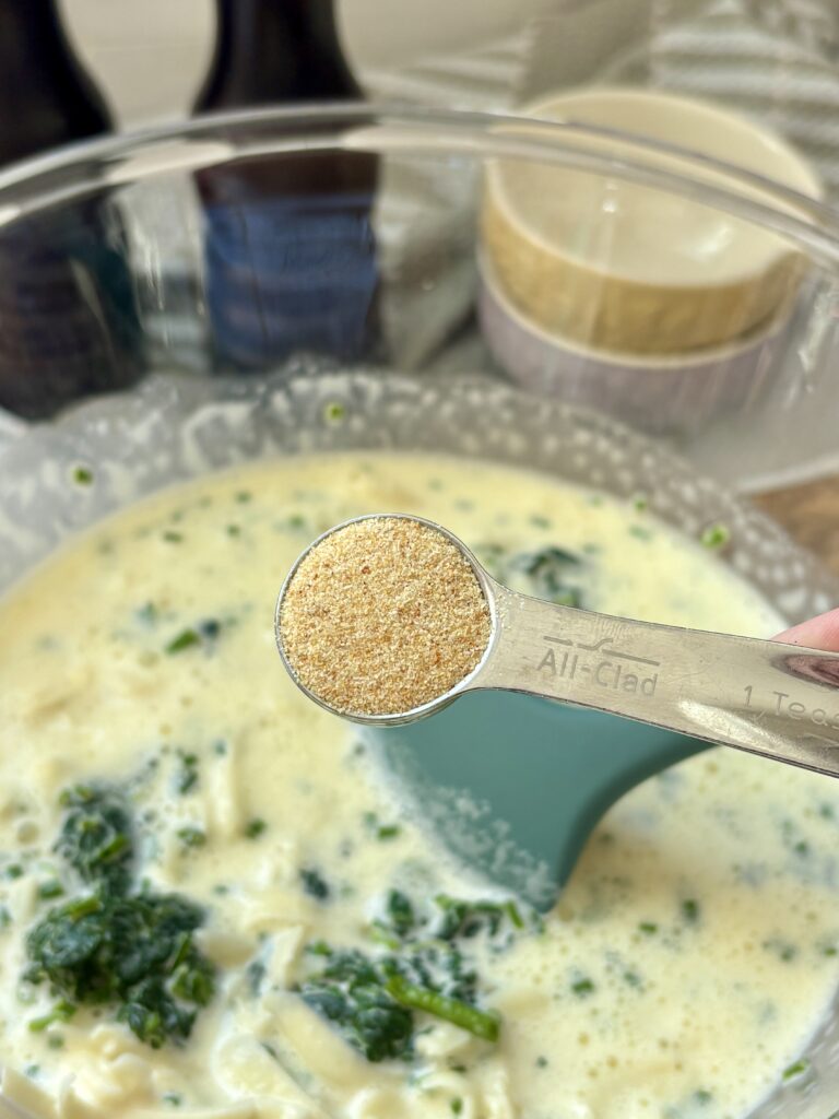 - Chopped spinach: Adds nutrients, color, and veggie goodness. Must be well drained.