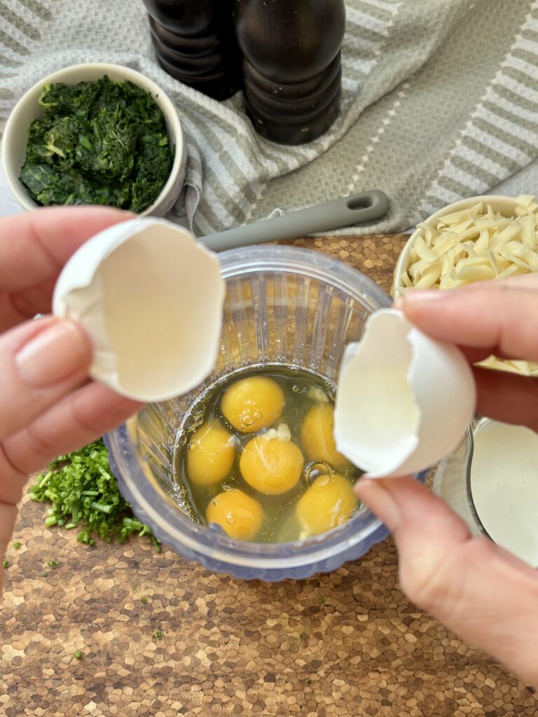 If you love those creamy, fluffy egg bites from the coffee shop but don’t love the price tag, then these Fake Out Sous Vide Veggie Egg Bites recipe is for you! These oven baked egg bites are blended for that signature silky texture, baked gently in a water bath to mimic sous vide cooking, and packed with spinach, Gruyère, and fresh chives for big flavor in every bite. They’re high in protein, meal prep friendly, freezer friendly, and perfect for busy mornings. Truly your next breakfast staple.