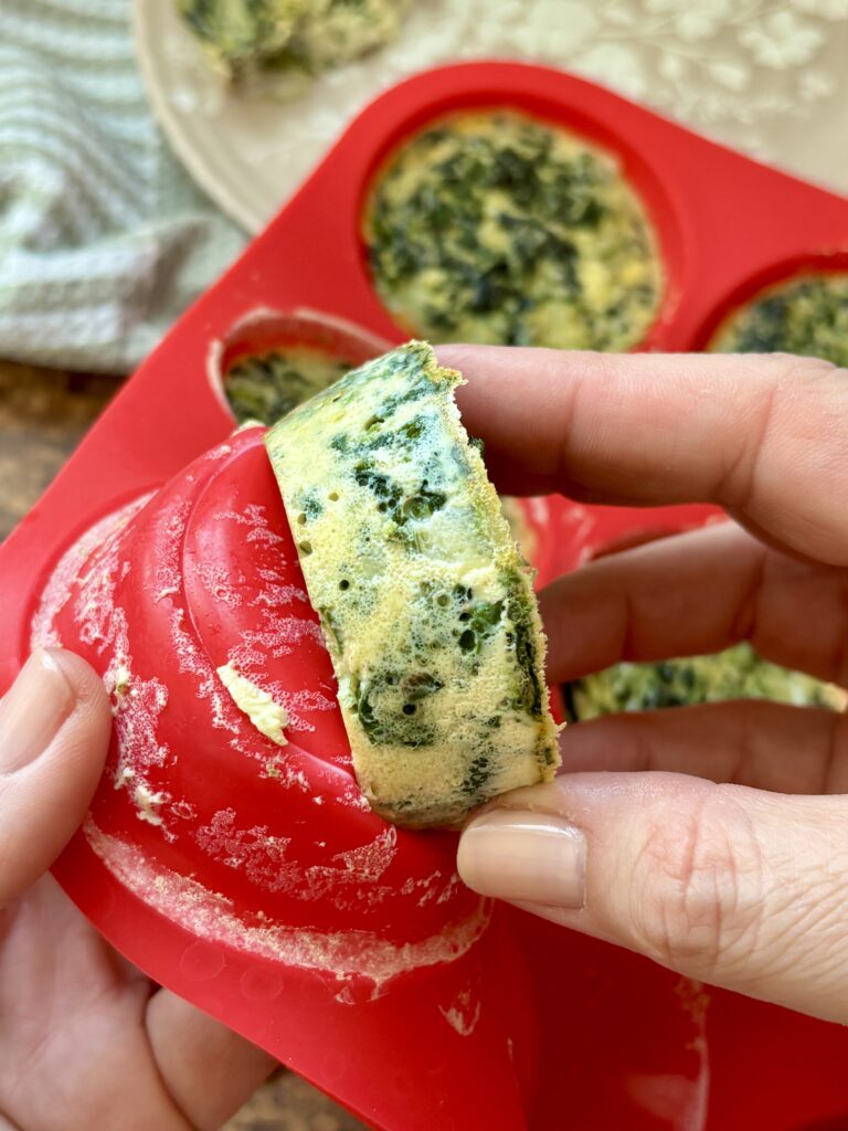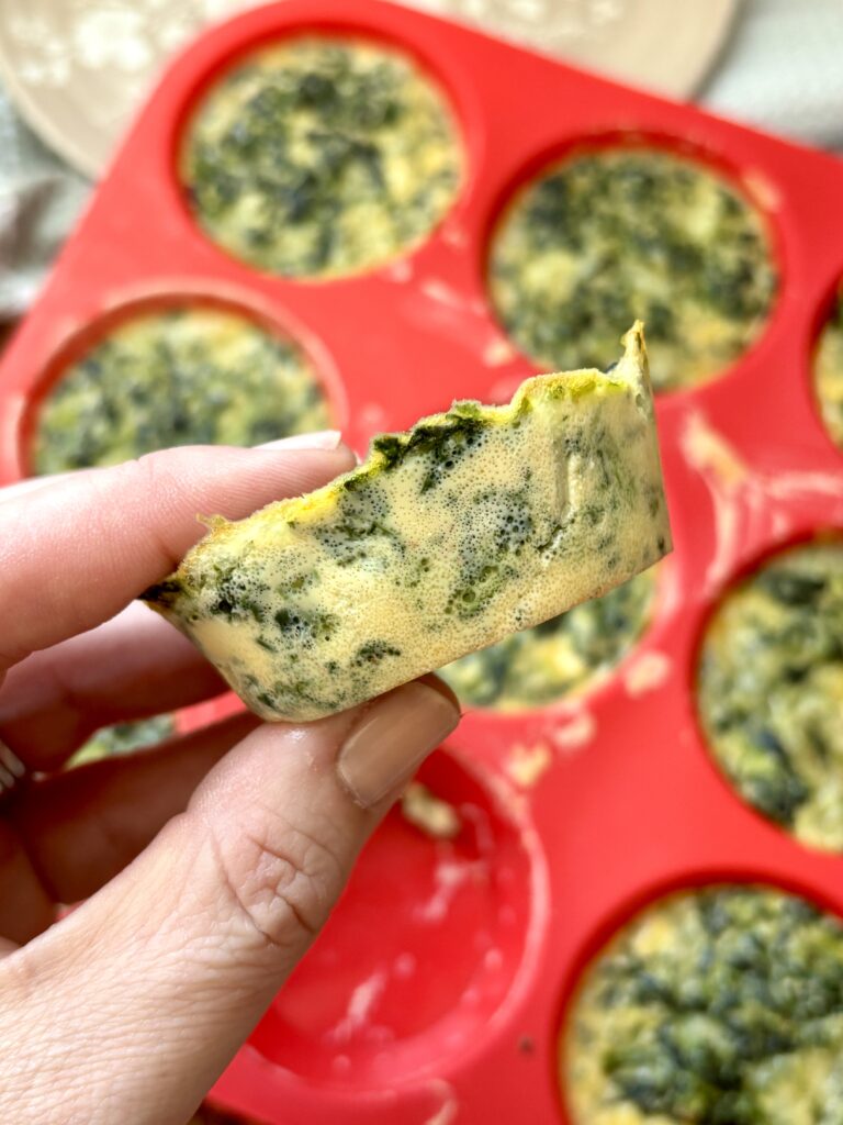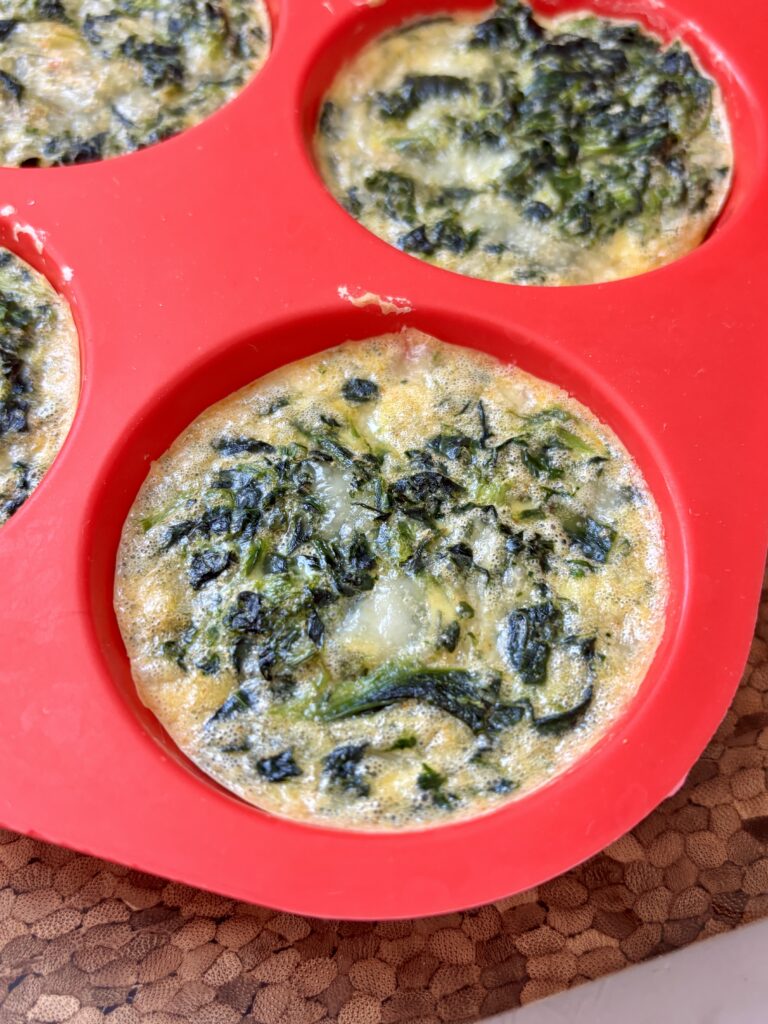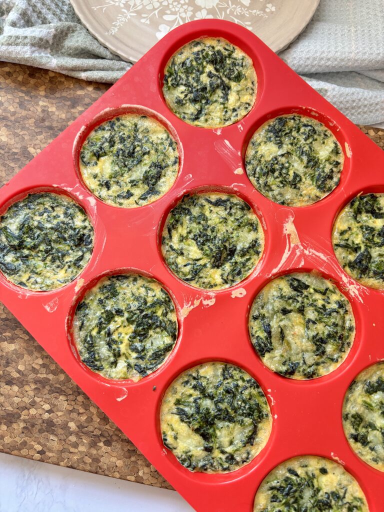 Yes! Just sauté 4–5 cups of fresh spinach until wilted, let it cool, then squeeze out as much liquid as possible and chop it before adding to your egg bite mixture. This keeps your egg bites fluffy instead of watery.