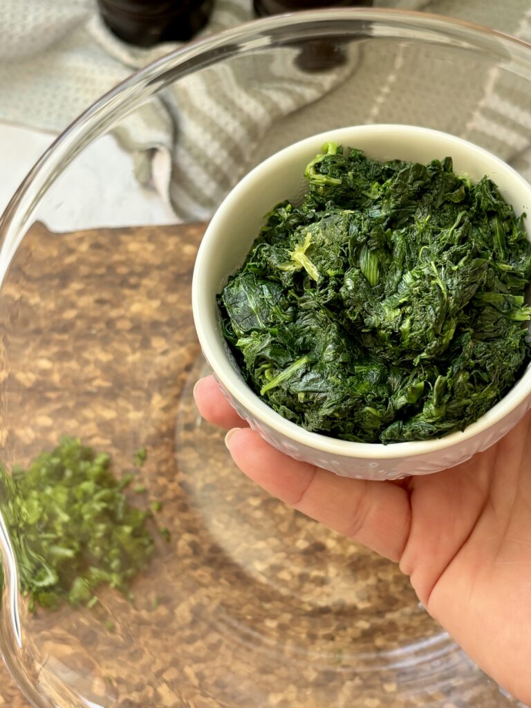 - 10 ounces frozen chopped spinach thawed and squeezed dry
