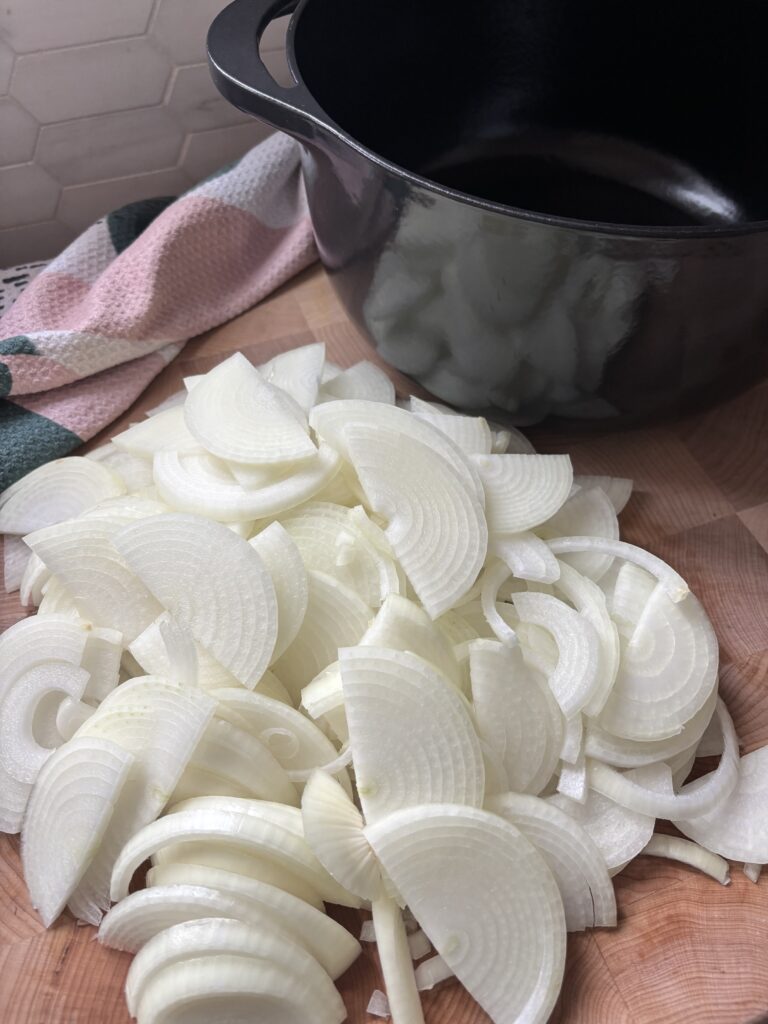 - 6 sweet onions thinly sliced (about 2 ½–3 pounds)