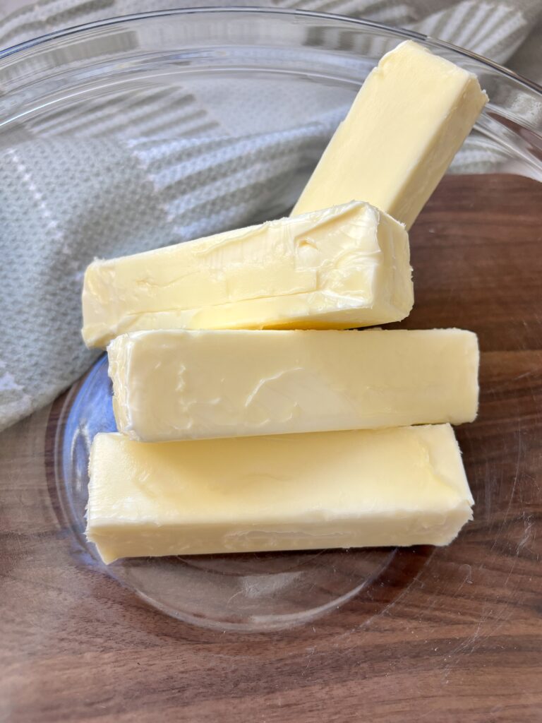 - Unsalted Butter: Salted butter can be used; omit the added salt