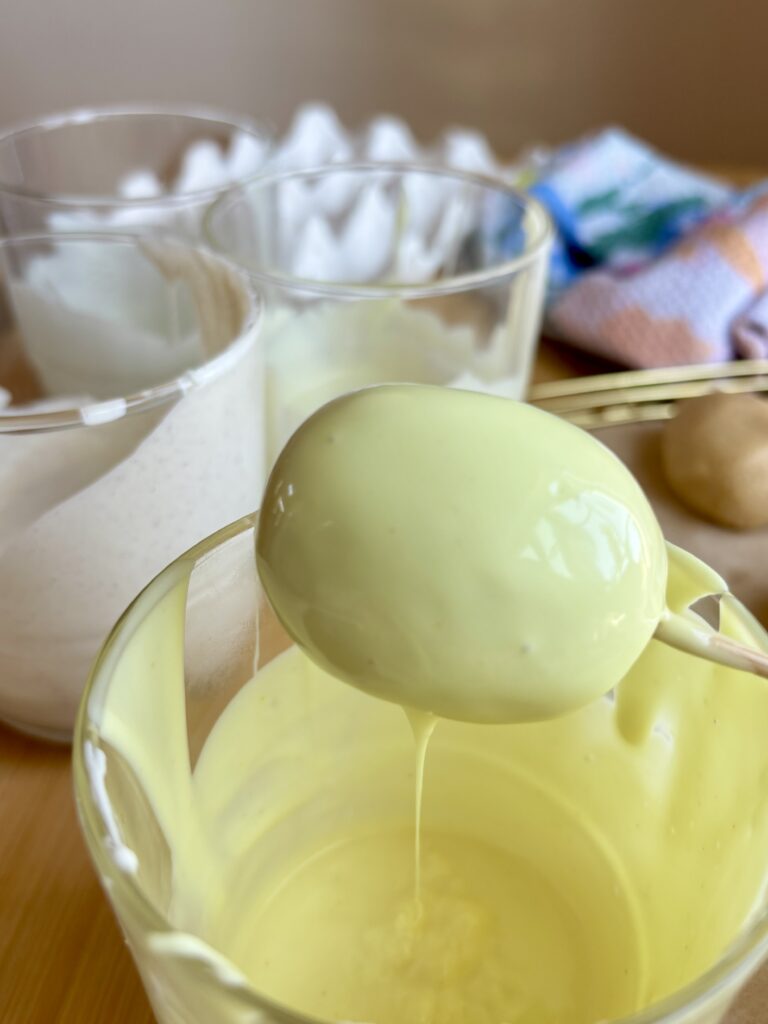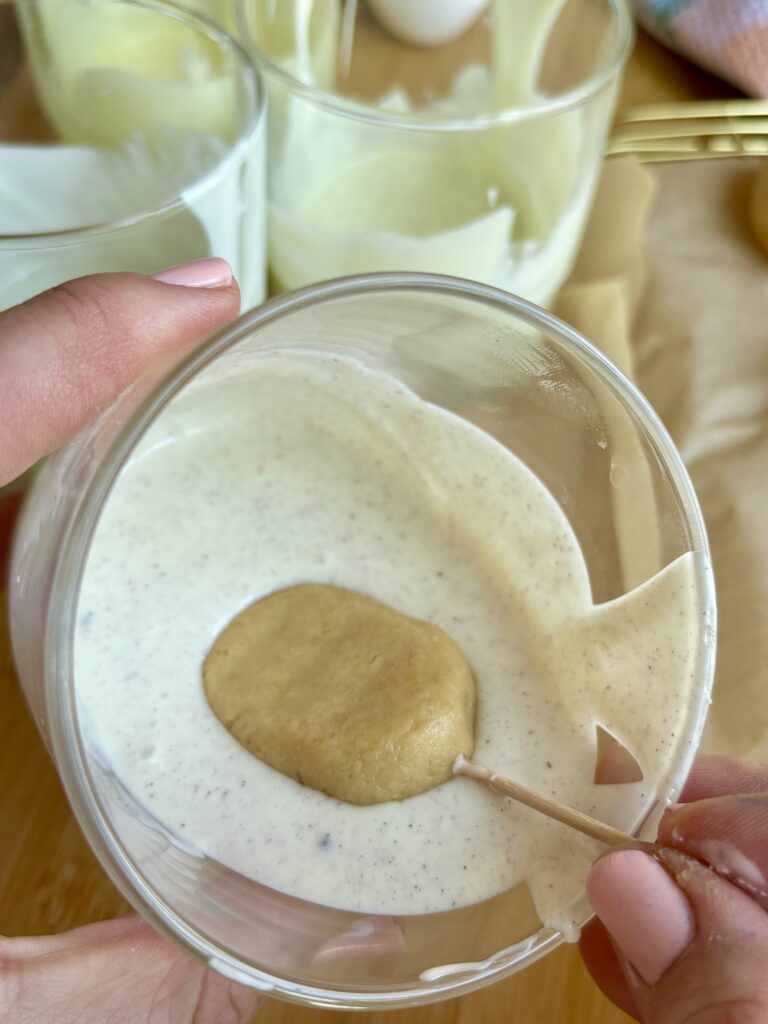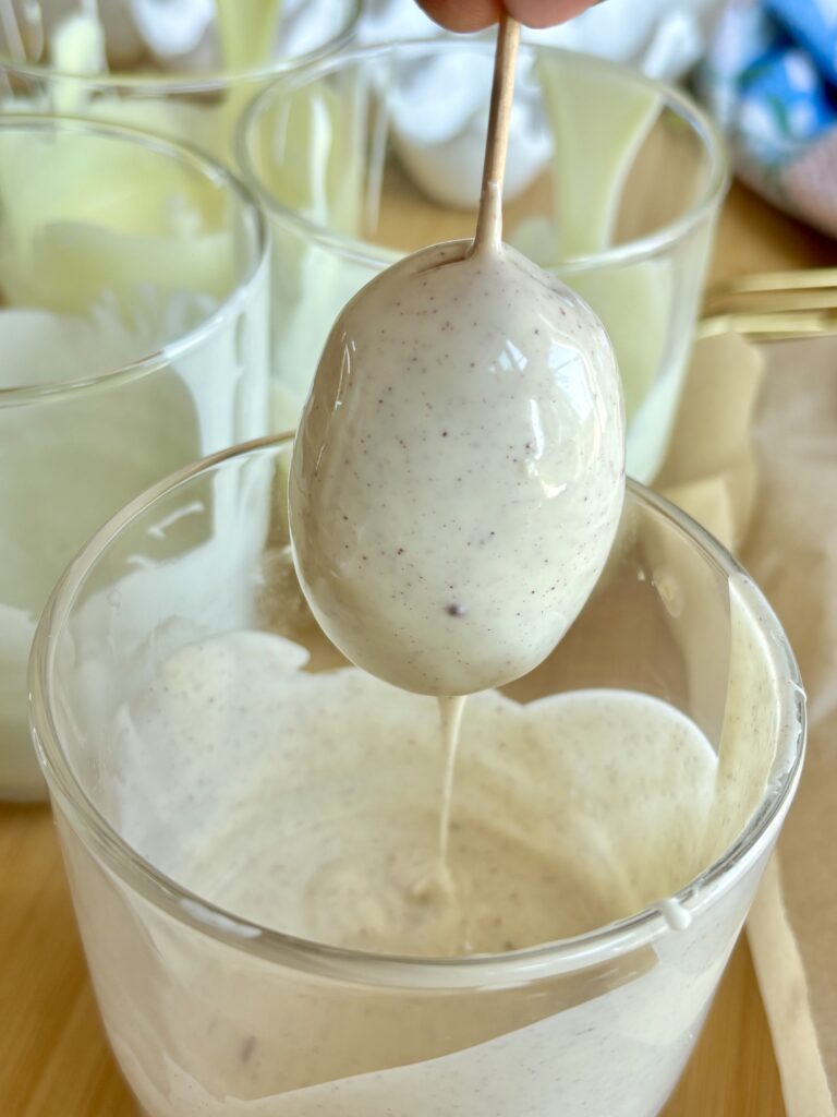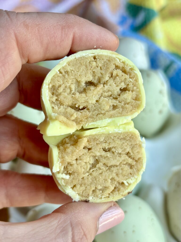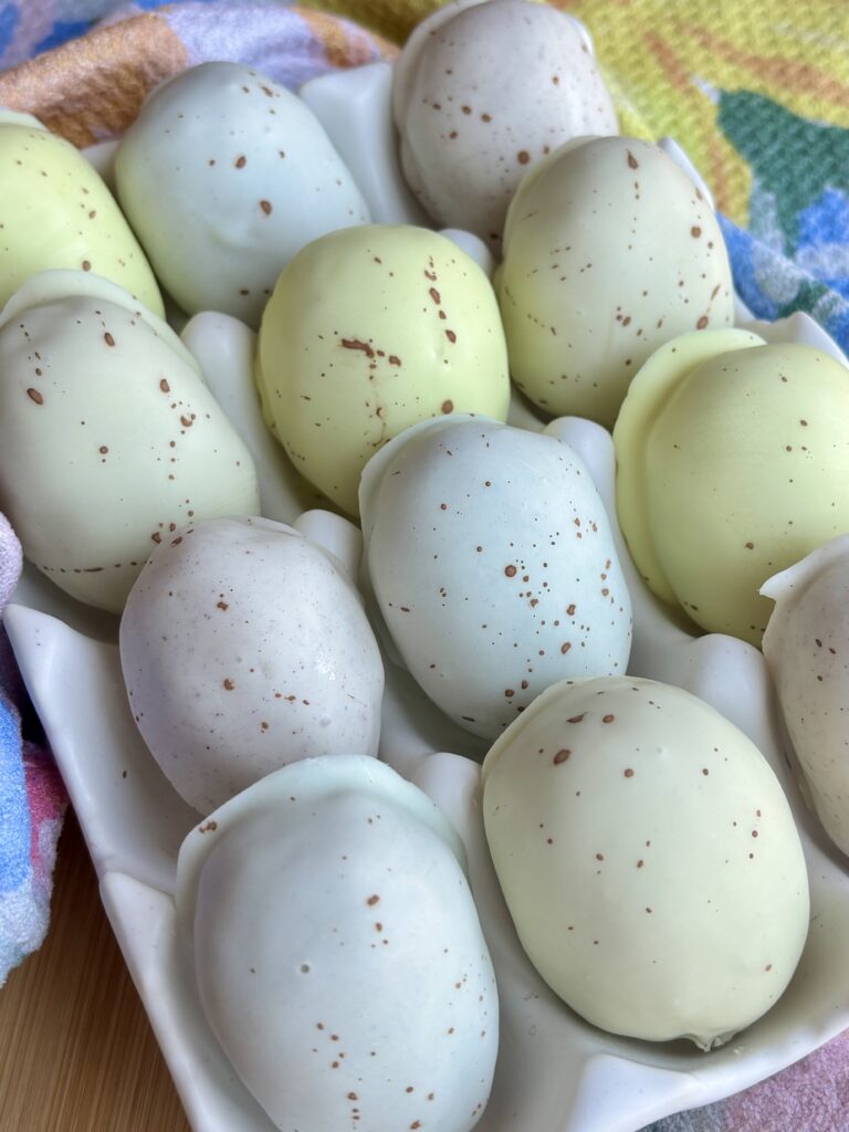 - Chill the eggs before dipping so the eggs hold their shape better. I usually stick them in the freezer for 20 minutes as I prepare the chocolate. If doing this over 2 days, you can make the eggs and place them in the refrigerator overnight.