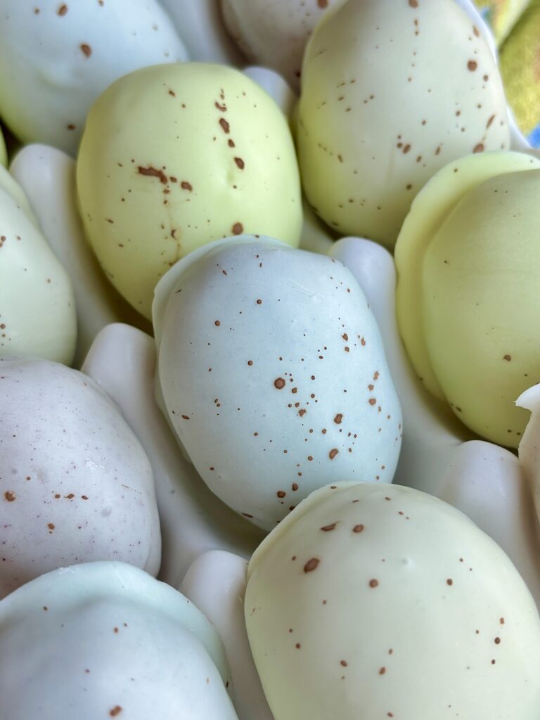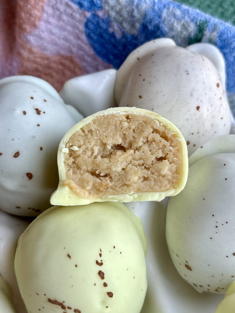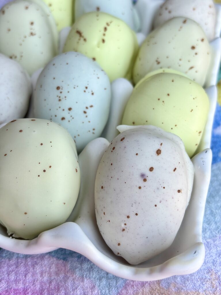 What makes these extra fun (and perfect for spring!) is the natural coloring—think soft blues from blue spirulina, light greens from matcha, sunny yellows from turmeric, and blush pinks from beet powder. Finished with a delicate cocoa speckle, they look just like robin’s eggs—but they’re secretly one of the easiest treats you can make.