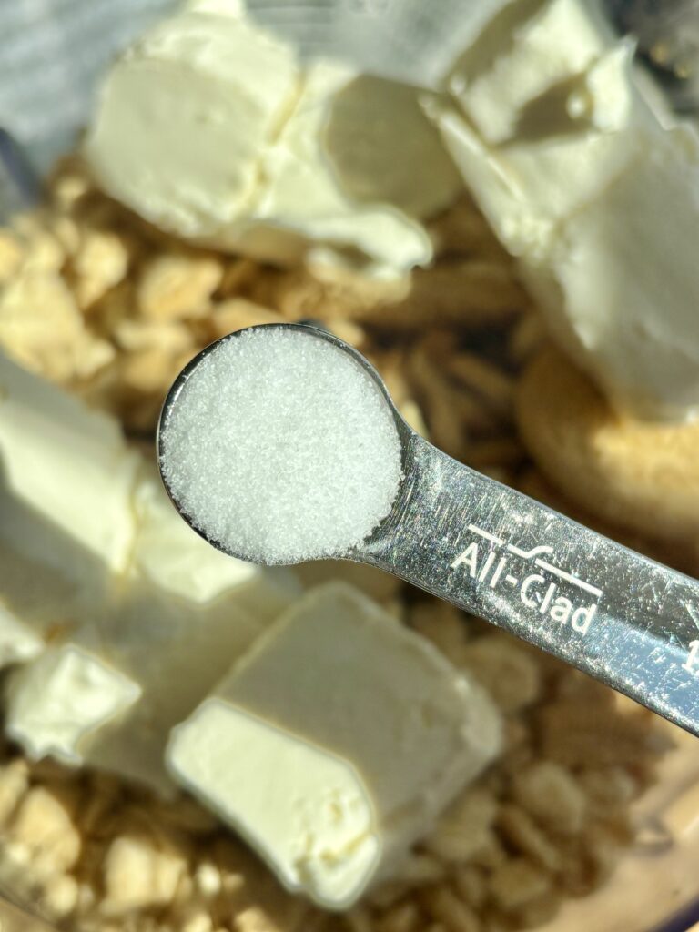 - Then add the salt and softened cream cheese and blend until smooth and fully combined.