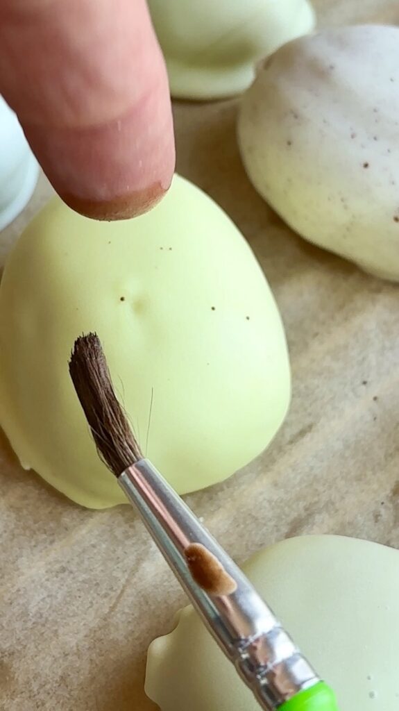 - Speckling Tip: Use a pastry brush or clean/new paint brush to flick the cocoa mixture lightly for a natural egg look—less is more!