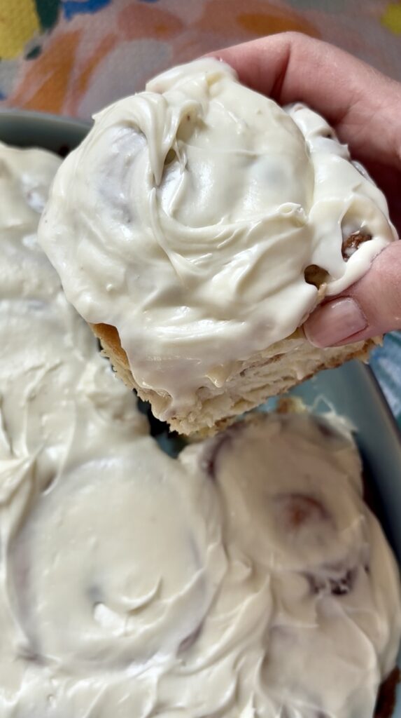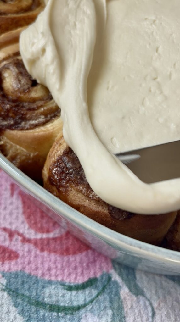 • Freezer: Freeze baked rolls (unfrosted) for up to 2 months. Thaw overnight in the fridge, warm in the oven, and frost before serving.