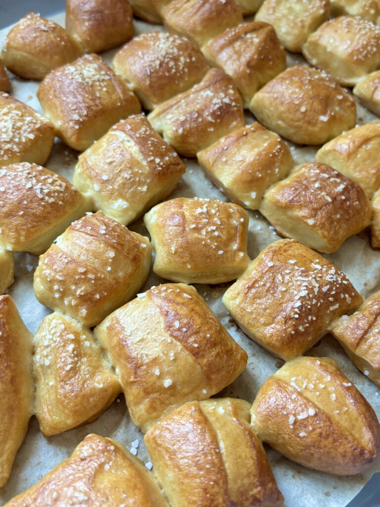 These Homemade Soft Pretzel Nuggets are warm, chewy on the inside, perfectly golden on the outside, and everything you want from a classic soft pretzel — just bite sized which makes them more fun. They are made from a simple yeast dough, take a traditional baking soda bath, and then get baked for that signature pretzel flavor…