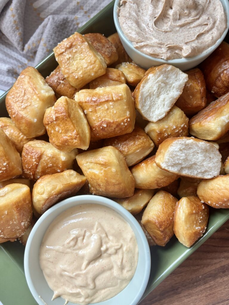 They’re perfect for game day spreads, after school snacks, movie nights, or serving alongside cheese sauce, mustard, or even my brown sugar cinnamon cream cheese dip for a sweet twist. The dough comes together easily, the rise is forgiving, and the nuggets bake up beautifully every single time. Once you make homemade pretzels like this, you’ll never want them any other way again.