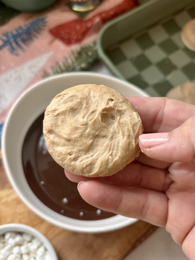 These frozen chocolate dipped treats combine creamy Greek yogurt, nutty cashew butter, and warm vanilla bean with hints of cocoa, cinnamon, and butter extract for that unmistakable sugar cookie hot chocolate vibe.