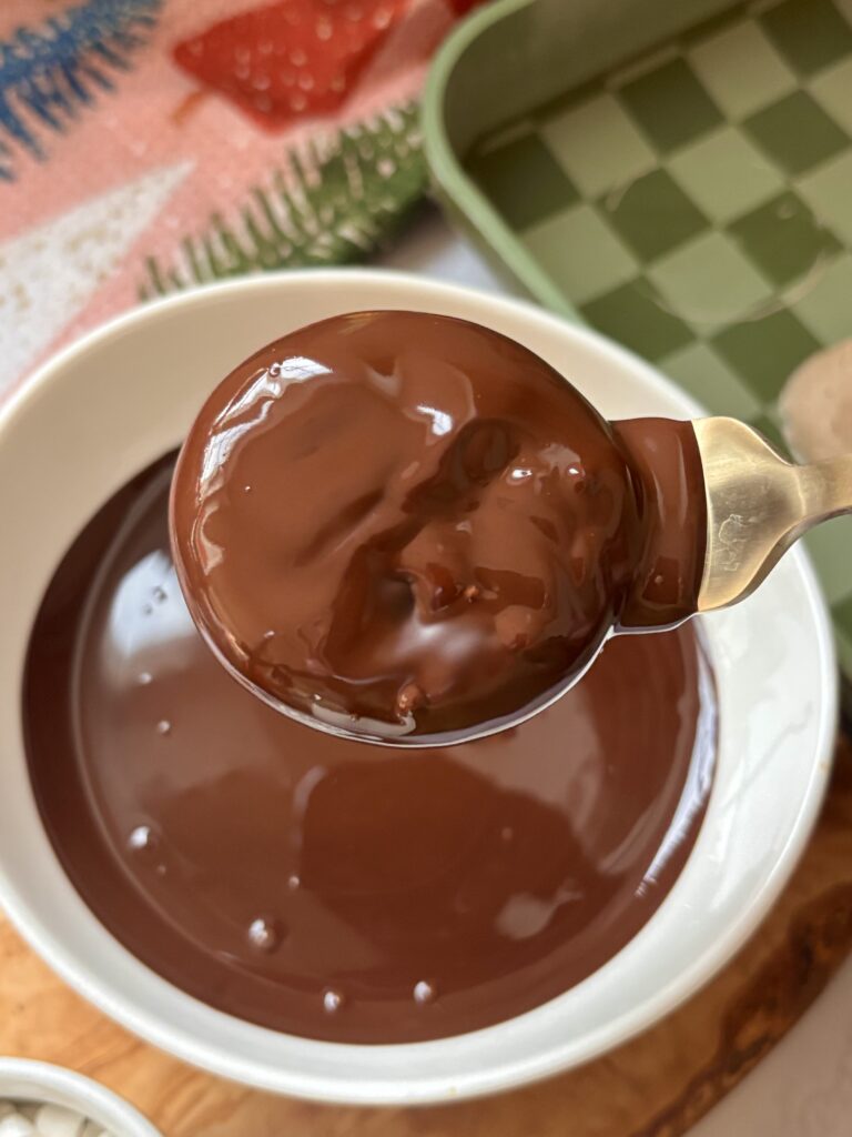 If the chocolate is too thick, add a teaspoon of coconut oil to help it melt smoothly and create a glossy finish. You can check out my guide for melting chocolate here.