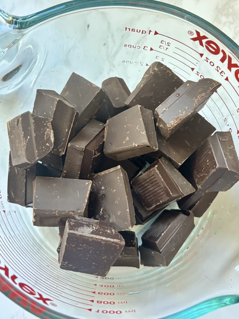 1. Chop chocolate finely so it melts evenly. Place in a microwave-safe bowl (glass works best).