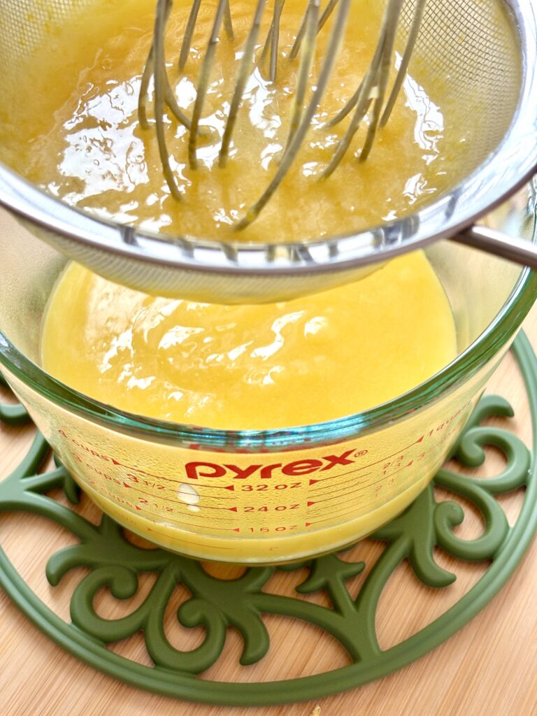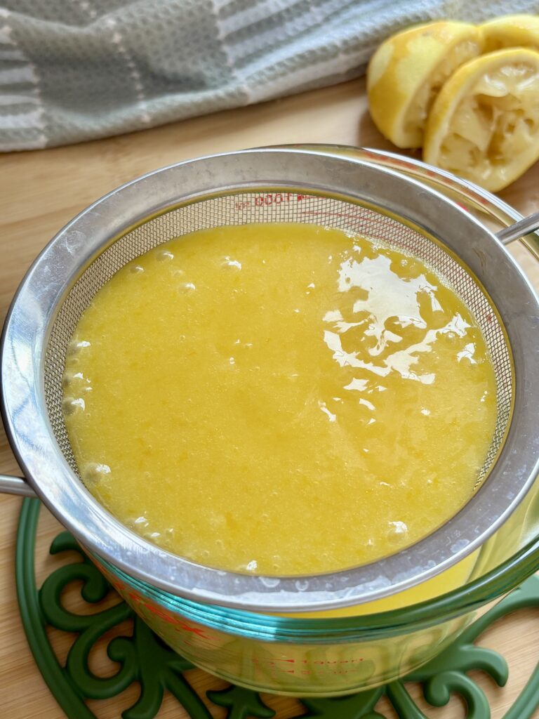 This removes zest pieces or tiny cooked egg bits for an even smoother texture. I highly recommend this!