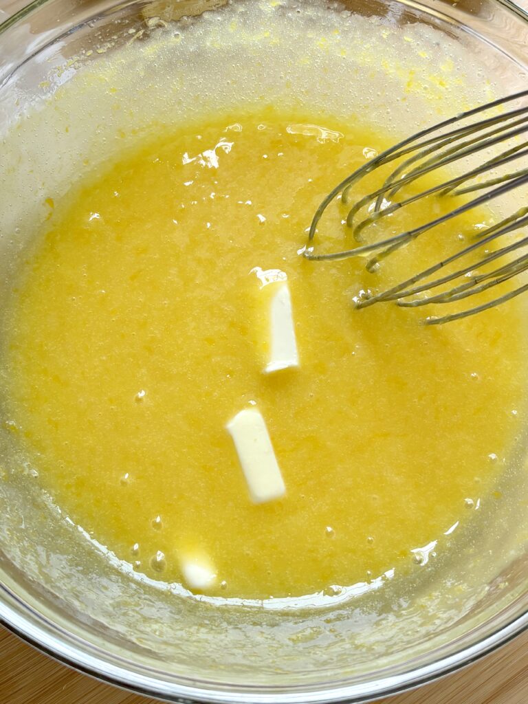 • Remove from heat and whisk in butter one tablespoon at a time until fully melted and smooth.
