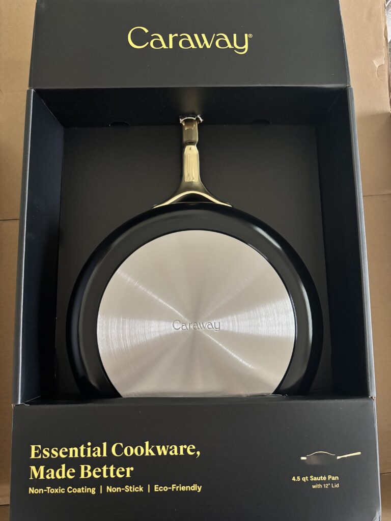 I’ve been enjoying their gorgeous black and gold pots, pans, and baking sheets. Nontoxic.