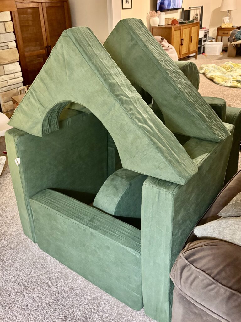 Their Super Castle Play Sofa is a family favorite! 17 pieces that can be arranged in endless ways. Perfect for families with young kids.