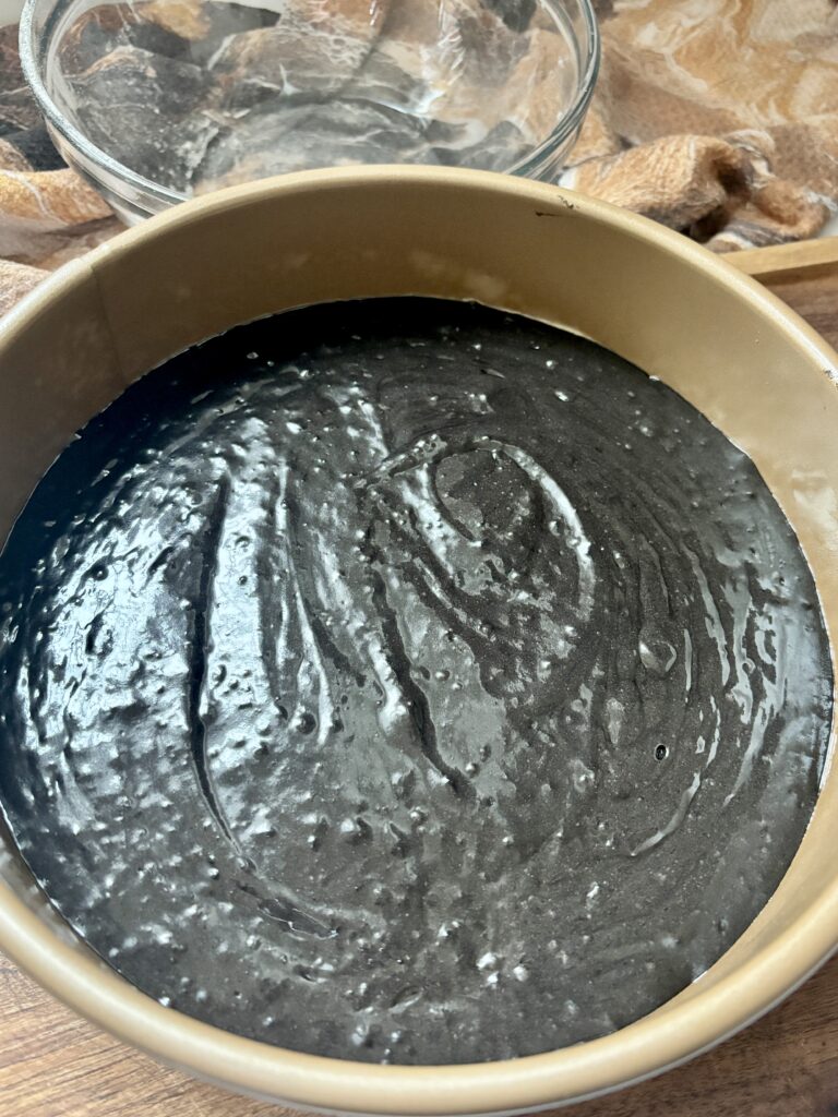 - Line your cake pan with parchment to ensure easy removal.